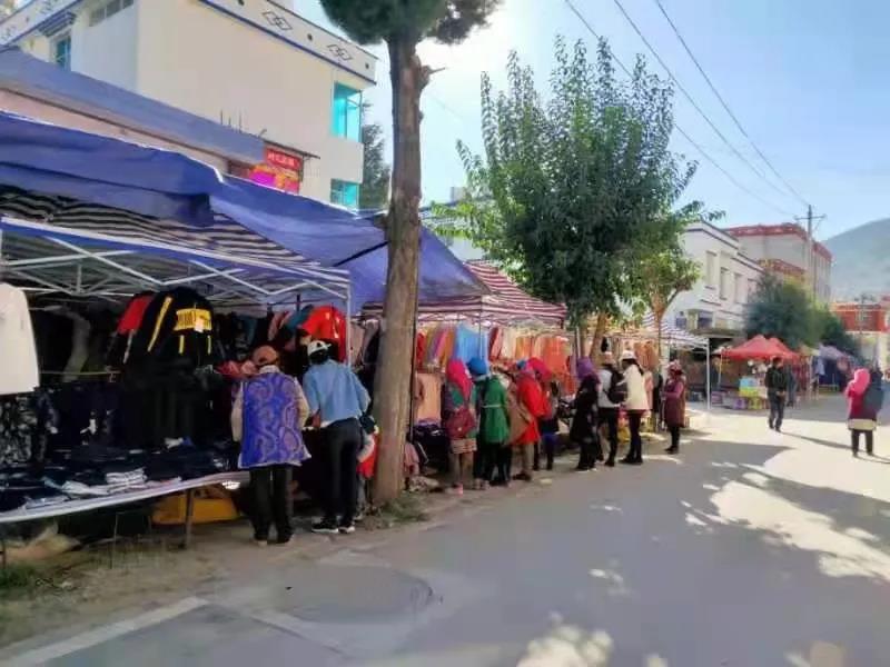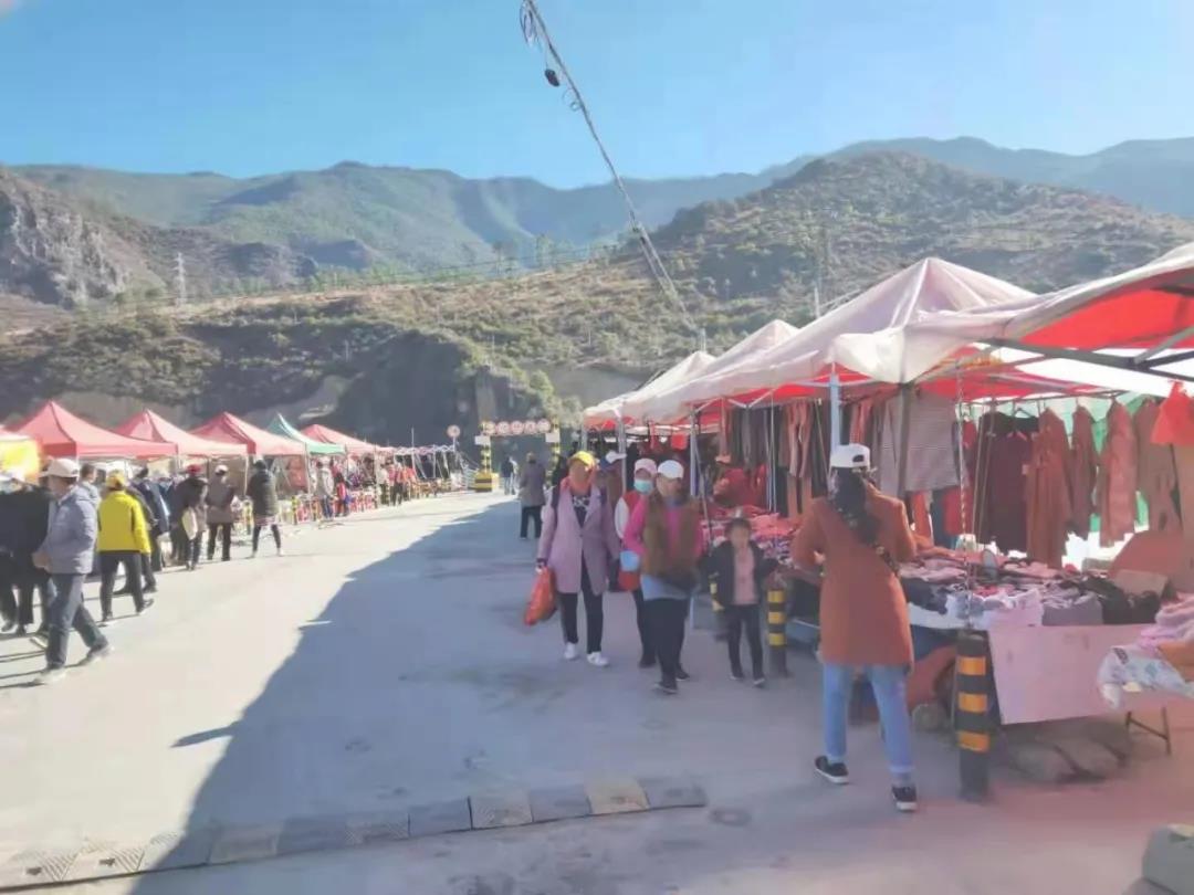 拖顶乡集镇大街小巷商贾云集、人来人往、一片热闹景象,来自周边地方、邻近乡镇和拖顶本地的客商齐聚,纷纷摆起衣服鞋帽、果品小吃、观赏花卉、农具农资等摊位;极具乡土气息的传统民族服饰、弦子、竹筐、木碗、药材、蜂蜜等当地特色产品格外引人关注,平日难得一见的商品也纷纷登台亮相。沿街各类大小摊位连绵长达1000余米,吸引了四面八方的群众前来购买,场面尤为宏大。在此次文化节期间组织农特产品及日用品展销对于刺激当地群众消费,推动区域商贸流通,带动全乡经济发展具有十分重要的作用。