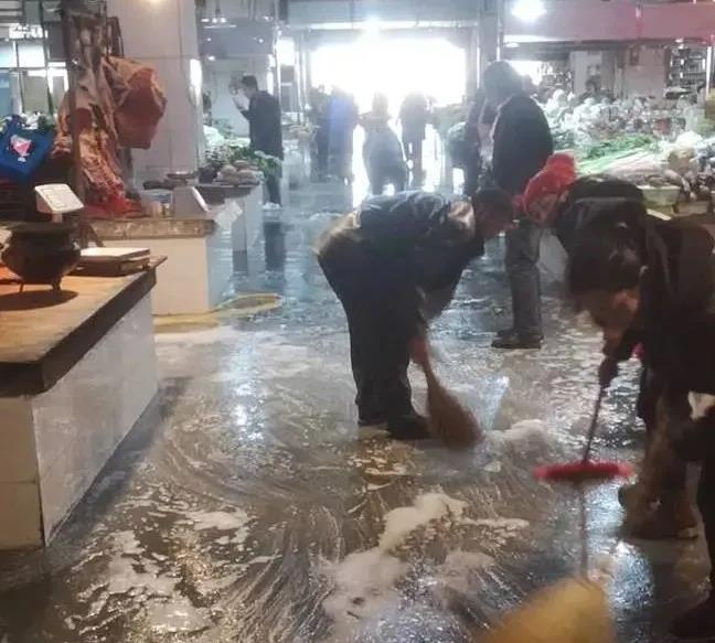 在新的一年里,为进一步加强农贸市场环境卫生,给广大消费者提供一个更加干净舒适便捷的市场购物环境,2021年1月3日,县市场监督管理局管集市专班人员组织温商农贸市场物业、清洁消毒人员及场内相关摊位负责人对温商农贸市场地面进行全面的清扫冲洗。冲洗完成后,温商农贸市场地面焕然一新,为长期保持场内环境卫生,县市场监督管理局加强对农贸市场开办方监督管理,按照市场环境卫生标准,健全卫生管理制度,落实管理措施,严格落实“一日一清洁消毒、一周一大扫除、一月一大清洁”的清洁消毒措施。
