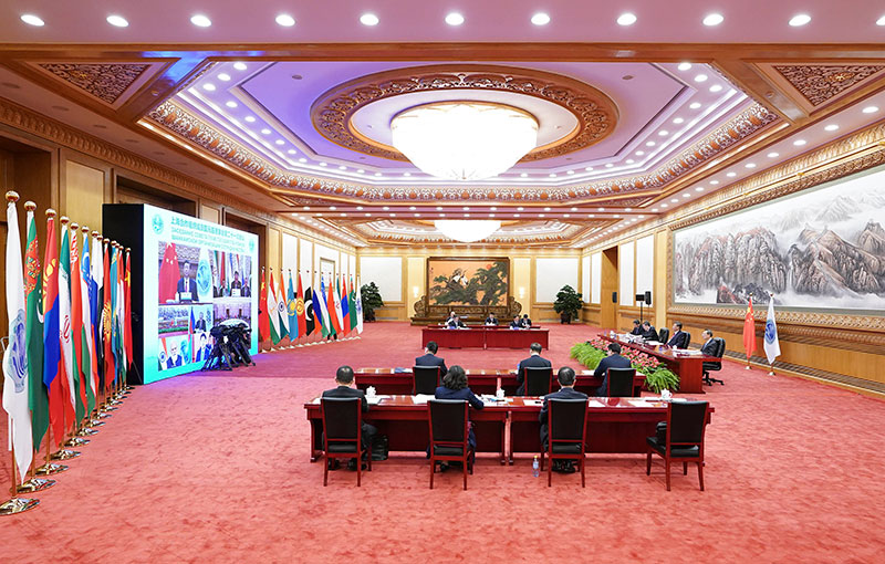9月17日,国家主席习近平在北京以视频方式出席上海合作组织成员国元首理事会第二十一次会议并发表重要讲话。新华社记者 刘彬 摄