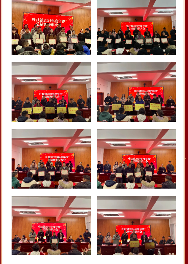 岁序更替,华章日新。在过去一年,叶枝镇干部群众齐心协力,在发展之路上笃定前行。1月15日至16日,叶枝镇举行了2024年度年终总结及先进表彰大会,旨在通过总结提炼经验,汲取前行力量,为叶枝的持续发展奠定坚实基础,同时对在过去一年中表现突出的先进集体和个人进行表彰,激励全体干部职工在新的一年里再创佳绩。全镇干部职工、各村“两委”成员、驻村工作队、县驻镇各单位负责人参加。