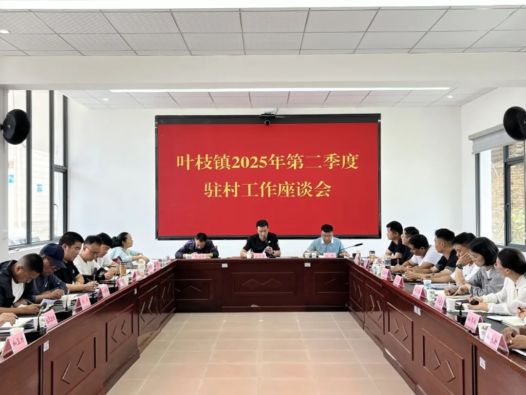 为全面总结2025年上半年驻村帮扶工作成效,交流经验做法,科学谋划下半年乡村振兴工作,6月26日,叶枝镇召开2025年上半年驻村工作队座谈会。镇党委、政府领导班子成员,全体驻村第一书记及工作队员参会。