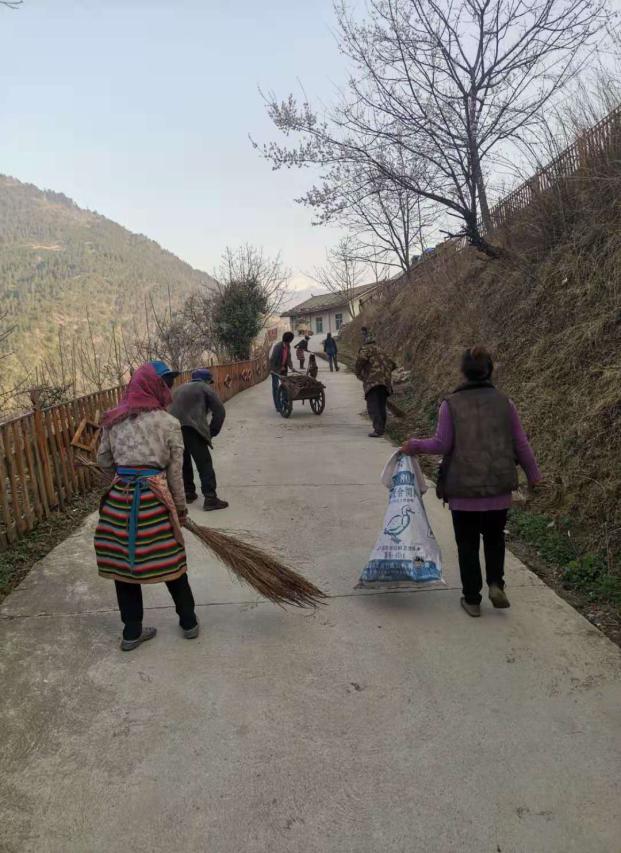马干组群众清理侧沟 阿尺组群众组织清扫路面