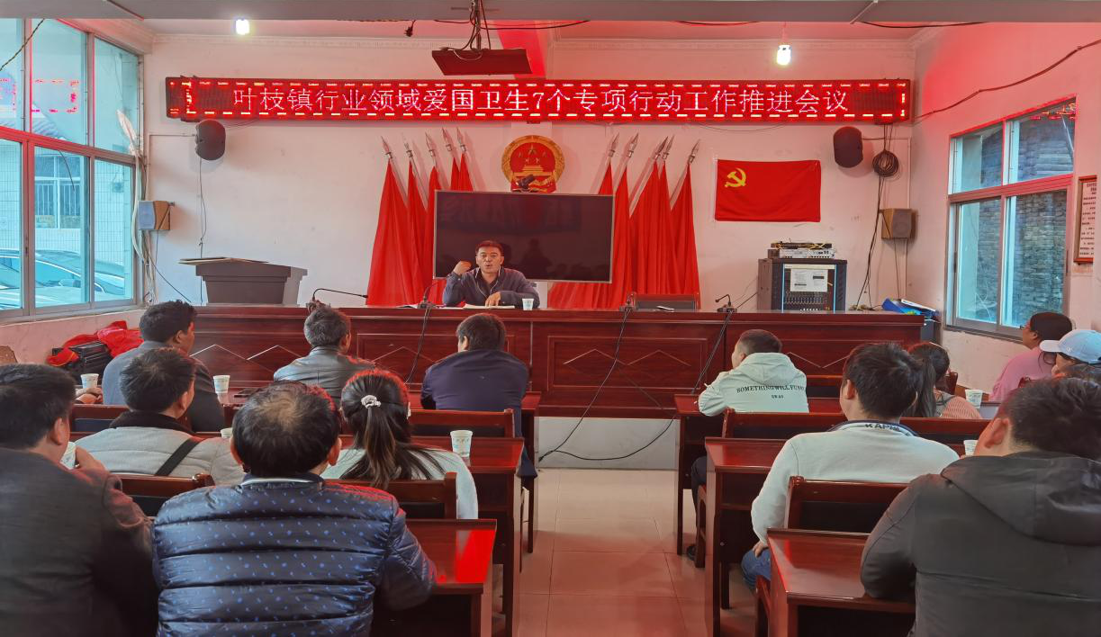 为进一步巩固提升爱国卫生“7 个专项行动”工作成果,加强对全镇占道经营行为的管理,美化镇容镇貌,提升整体形象,结合我镇占道经营现状,全面提升我镇人居环境卫生水平,打造健康文明的生活环境,推进叶枝镇爱国卫生“7 个专项行动”工作的开展。3月19日,叶枝镇组织召开行业领域爱国卫生7个专项行动工作推进会议,会议由叶枝镇统战委员主持,叶枝镇个体工商户、企业参会。