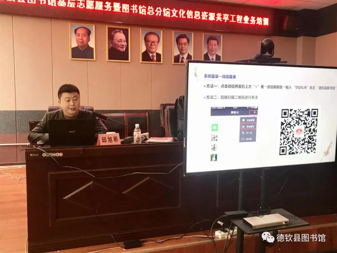 为不断加强我县公共文化服务体系建设,强化图书馆各分馆工作人员业务素质,增进总馆及各分馆之间的交流协作,学习先进的阅读推广活动案例,实现“读书会”在全县推广普及,发挥好信息资源共享工程在基层的功能与作用,发挥图书馆的社会教育职能,为乡村振兴提供精神动力和智力支持,4月12日由德钦县文化和旅游局主办、德钦县图书馆承办、奔子栏镇文化站协办的图书馆基层志愿者服务暨总分馆信息资源共享工程业务培训在奔子栏镇文化站举办。德钦县文化和旅游局副局长格茸旺吉、奔子栏镇分馆文化副镇长安吾培初出席培训会议,德钦县图书馆全体,各乡镇分馆馆长、副馆长及奔子栏镇文化站全体共30余人参加了培训。邀请北京华夏网信科技有限公司市场部经理邱旭彬老师为参训学员授课。