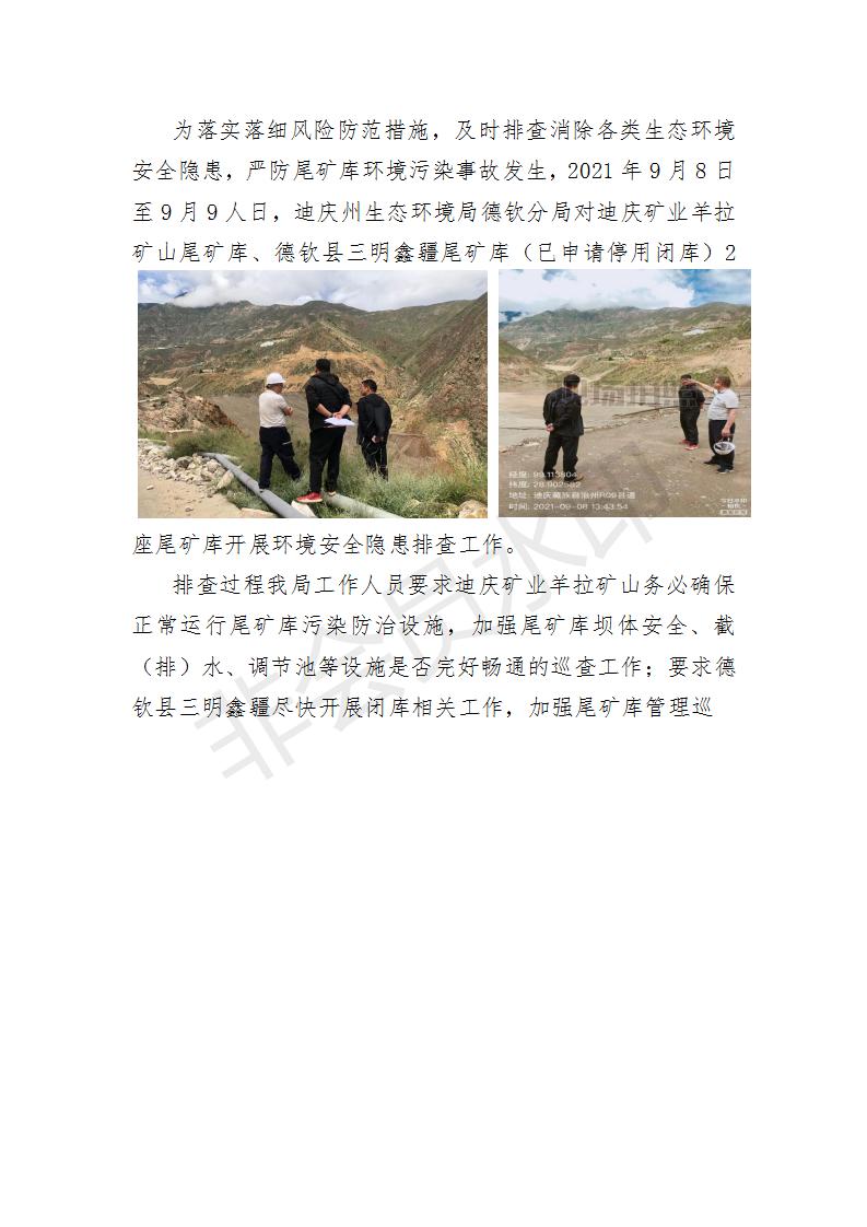 迪庆州生态环境局德钦分局开展尾矿库环境安全隐患排查