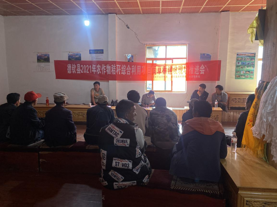 会议召集预建设饲草棚农户,详细介绍此次秸秆综合利用项目实施意义、饲草棚建设要求及项目建设时间要求,收集农户相关信息并与农户签订饲草棚建设承诺书,为确保2021年秸秆综合利用项目饲草棚建设按时完成打下坚实基础。