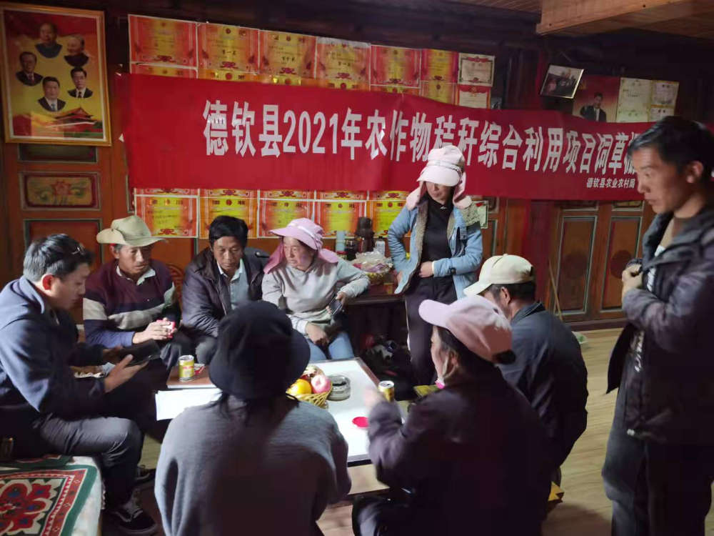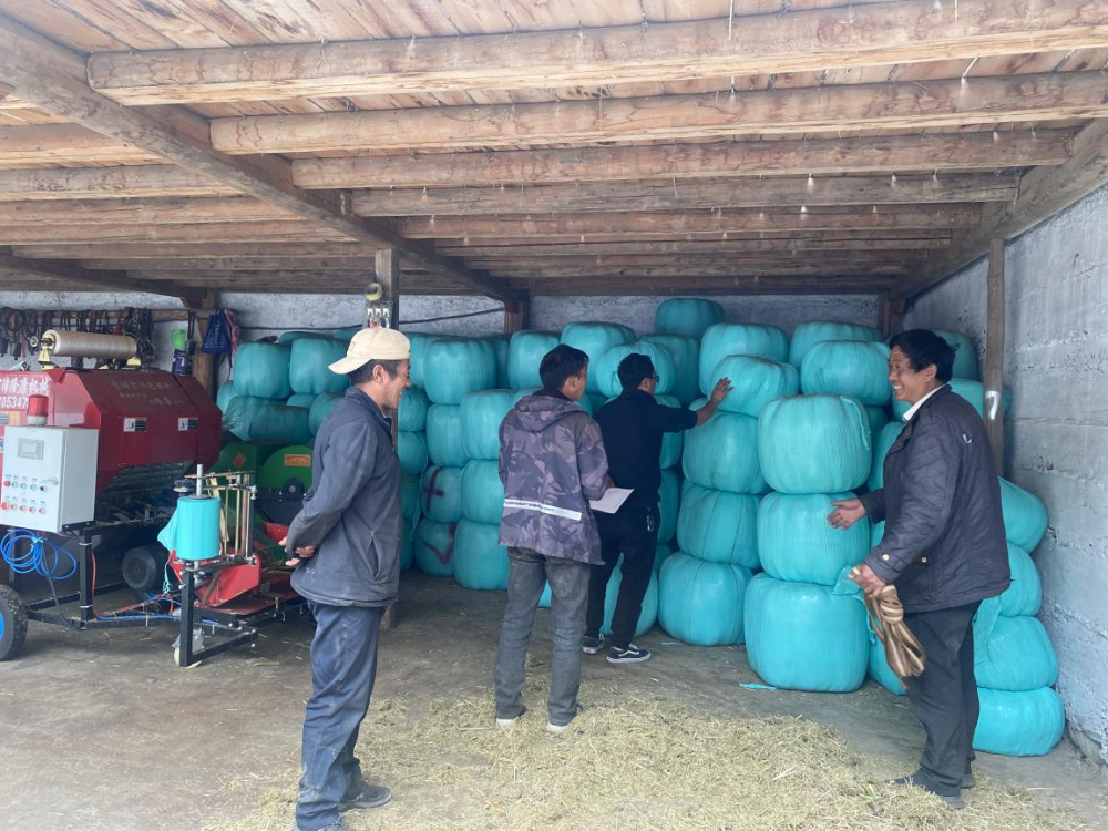除了开展饲草棚建设推进会外还查看了2021年秸秆综合利用项目中配置与拉水小组德钦县拉水农牦牛养殖有限公司的秸秆处理器械草料揉丝机、草料打捆机使用情况并与农户到预建设饲草棚的地址查看并提出相应建设建议。