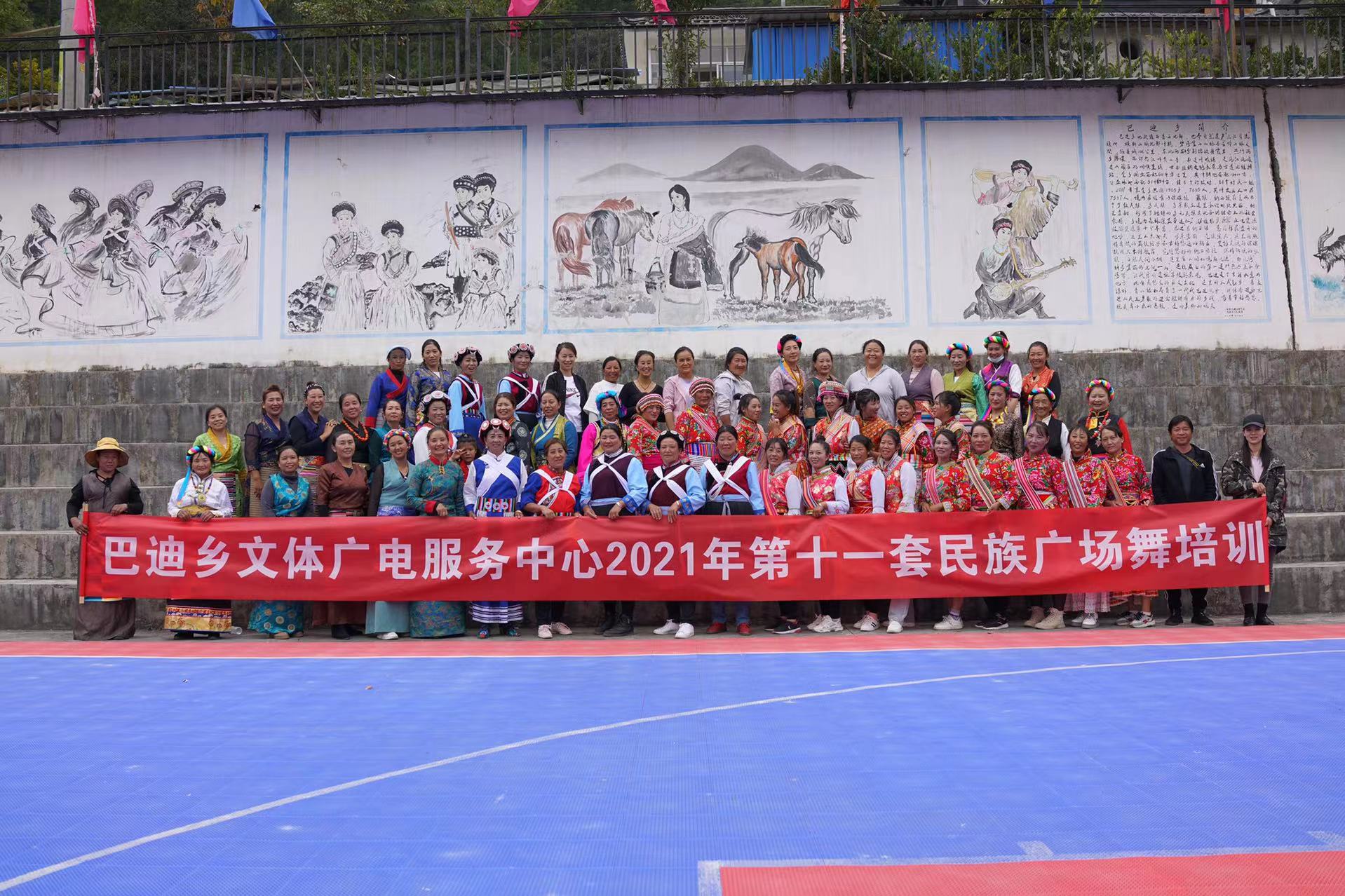 11月10日,巴迪乡2021年迪庆州第十一套民族广场舞培训班圆满结束,培训班汇报演出在巴迪乡民族文化广场举行,经过三天的紧张培训,学员们基本掌握了第十一套广场舞所包含的建塘锅庄、奔子栏书松锅庄、纳西舞蹈、苗族舞、白族舞、羊拉弦子、回族舞、彝族舞、傈僳族舞蹈、拖顶酒歌、尼西情舞、普米族舞蹈、汉族舞蹈十三种不同风格的舞蹈,学员们穿着各民族的服装,动作整齐熟练,达到了培训的预期目的。