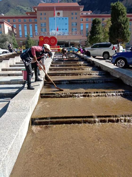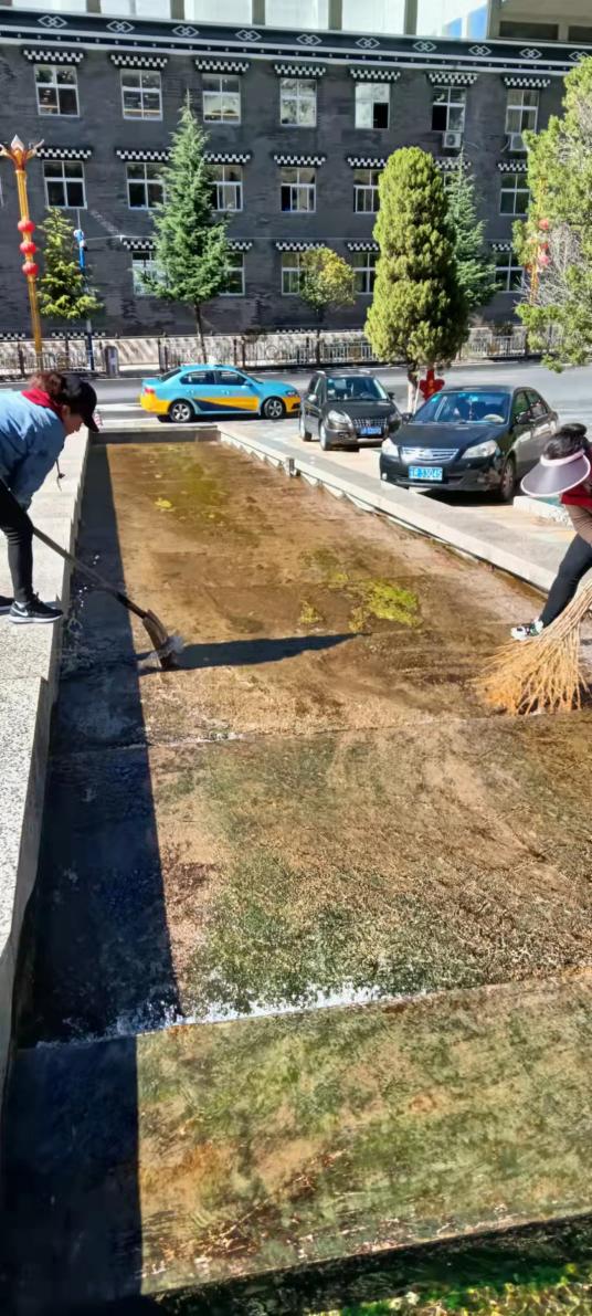 我局全体职工和保洁员围绕行政中心展开大扫除,清理了水池里的青苔和绿化带内的垃圾;排查明沟暗渠,确保不沟渠不堵塞。