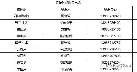 各接种点联系电话公布如下,如有疑问,可进行电话咨询!