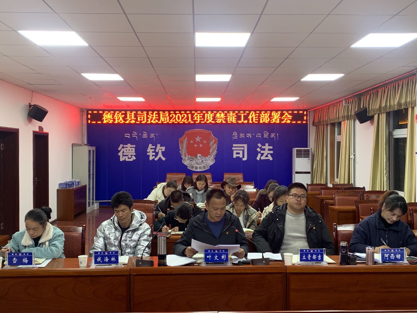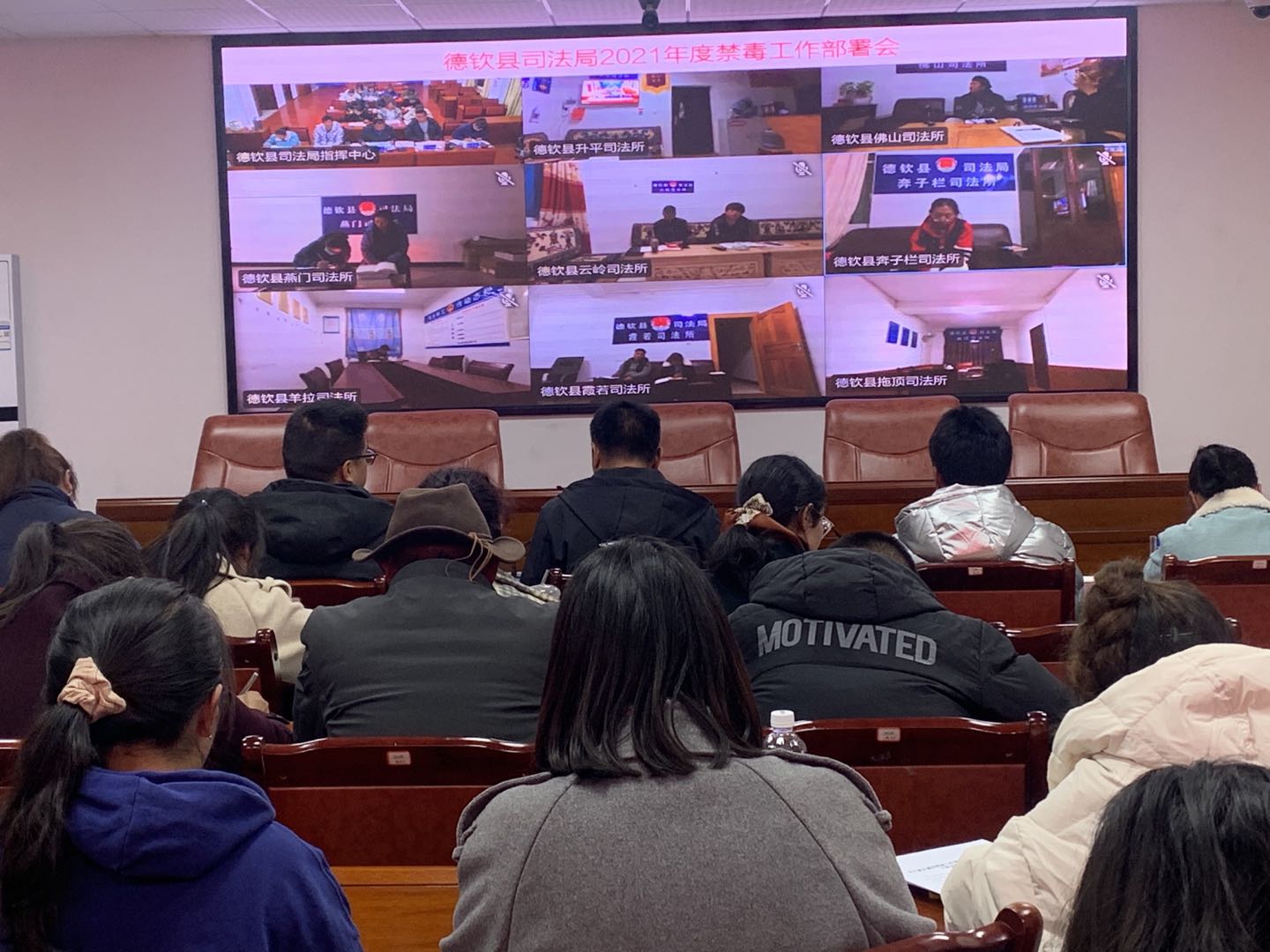 为认真开展好2021年司法行政系统毒品预防教育工作,根据县禁毒委相关工作要求,于2021年3月31日,召开德钦县司法局2021年禁毒工作部署会。会议由党组书记、局长叶文彬主持,会议以视频形式开到各基层司法所。