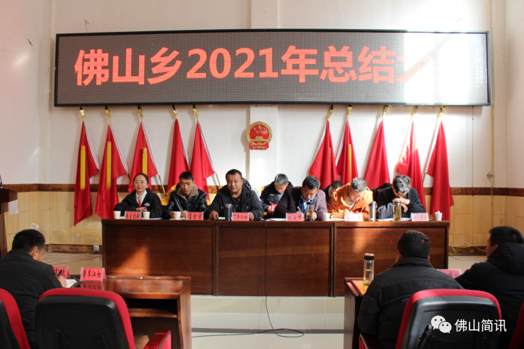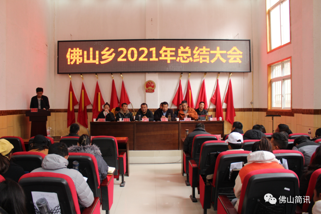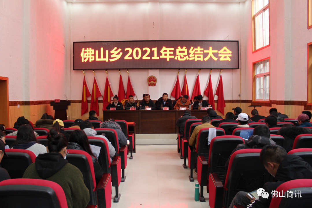 1月13日上午,佛山乡组织全体干部职工、各村“两委”及监委成员、全体驻村工作队员、驻地各单位负责人,在乡人民政府一楼大报告厅召开2021年度工作总结大会,旨在全面总结佛山过去一年工作,进一步提振乡村两级干部精气神,并有序安排部署近期各项重要工作任务。