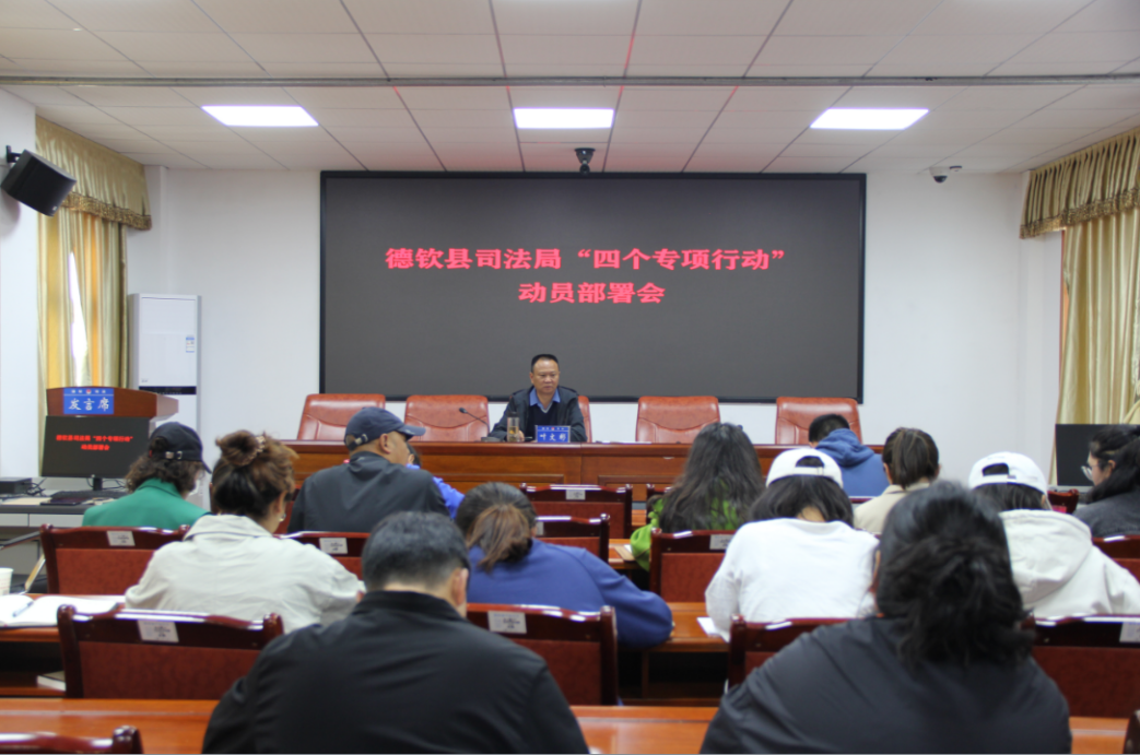 为认真贯彻落实中央部署和省委、州委、县委要求,进一步夯实平安德钦建设基础,以实际行动为党的二十大胜利召开创造安全稳定的政治社会环境。5月24日,德钦县司法局召开“四个专项行动”动员部署会,就加强特殊群体服务管理、命案防控三年行动、突出矛盾风险排查化解和打击整治养老诈骗“四个专项行动”作具体安排部署。