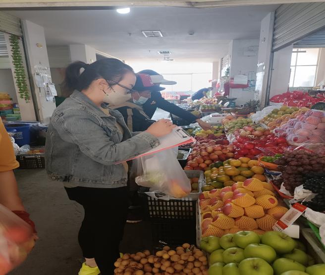 涉及温商农贸市场18家果蔬摊位的59种样品,完成5次抽检工作,共计出动工作人员15人次,完成检测水果蔬菜144个样品(其中蔬菜112个样品,水果32个样品),合格率为100%。