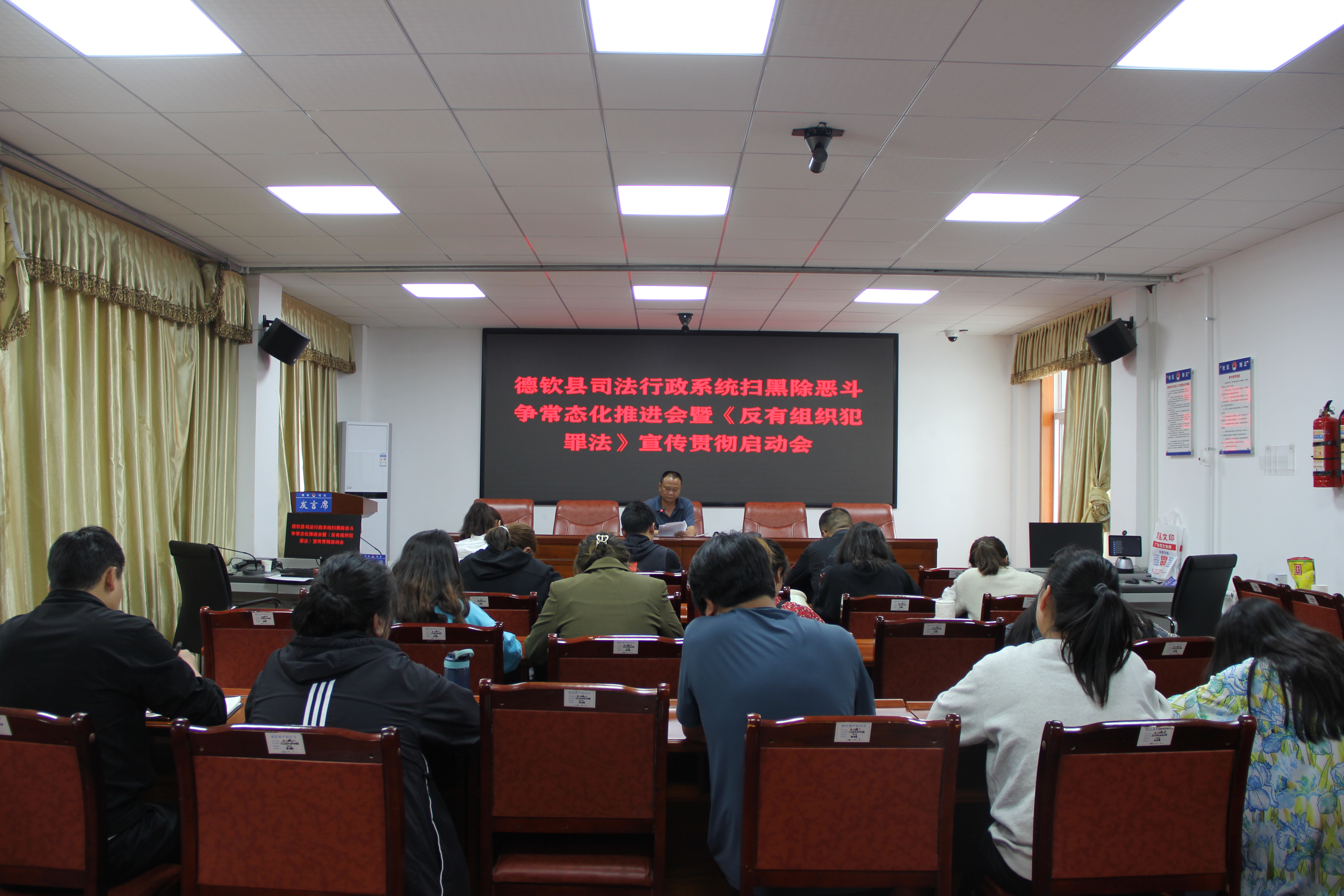 为深入贯彻落实全国扫黑办第二次、第三次主任会议、省扫黑除恶斗争领导小组2022年第一次会议相关精神,结合省、州、县2022年常态化开展扫黑除恶斗争工作要点。6月22日,德钦县司法局召开全县司法行政系统扫黑除恶斗争常态化推进会暨《反有组织犯罪法》宣传贯彻启动会。