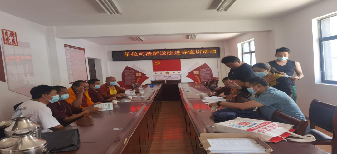 为深入开展普法工作,加强宗教活动场所法治宣传教育,有效普及国家有关宗教事务法律法规,在宗教场所营造尊法、学法、守法、用法的良好氛围,提高僧侣的法律意识和法治素养,加强寺庙社会化管理工作,引导寺庙积极发挥维护社会和谐稳定的作用,9月5日,羊拉司法所开展了“送法进寺”法治宣讲活动。
