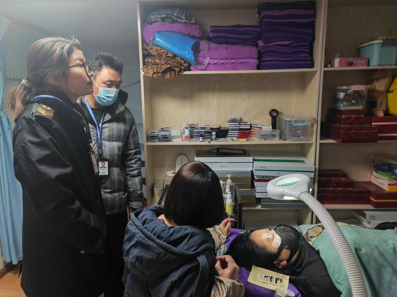 此次检查出动执法人员48人次,检查美容机构8家,此次检查重点查看各美容机构是否存在以虚构、隐瞒或者夸张实事的方式进行欺骗、误导消费者;是否存在无证行医行为,全面排查“有照有证”“无证无照”“有照无证”情况;严厉整治非法经营药品、医疗器械行为;整治涉费涉税违规行为,严厉打击变相提高收费标准;检查美容机构负责人是否通过抖音、微信等网络发布不良信息或进行虚假宣传。
