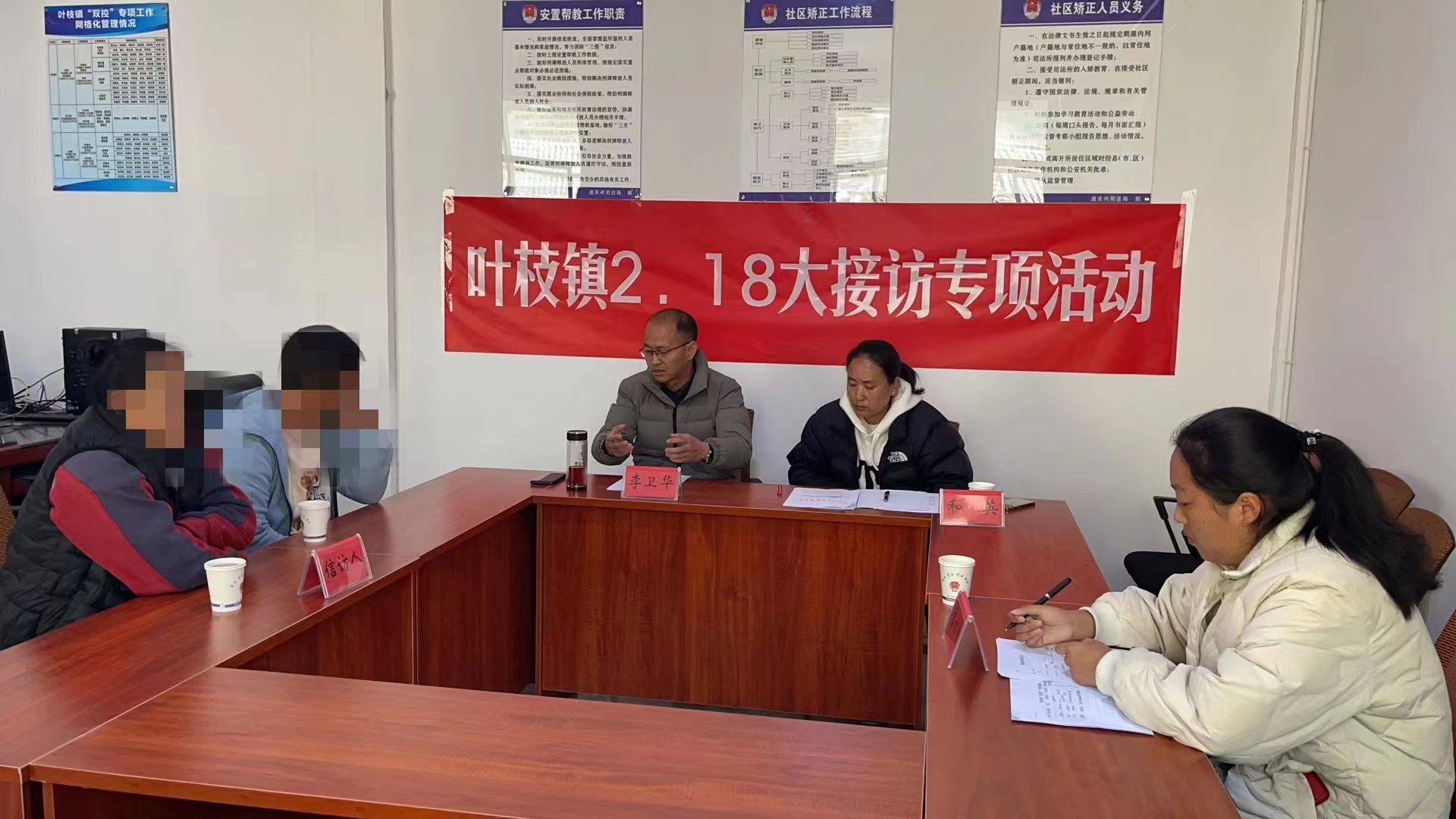 为扎实开展好群众“大接访”工作,进一步畅通群众诉求表达渠道,及时、有效帮助群众解决“急难愁盼”问题,2023年2月18日,叶枝镇党委书记李卫华、镇长和英在叶枝镇综治中心接访室开展群众接访活动。全天共接访4批8人次,问题主要涉及“双控”工作、土地使用、房屋建设、就业务工、产业发展、项目建设等6个领域,党委书记李卫华、镇长和英两位同志在认真听取群众的问题反映后,都对其作出一一答复和解决。