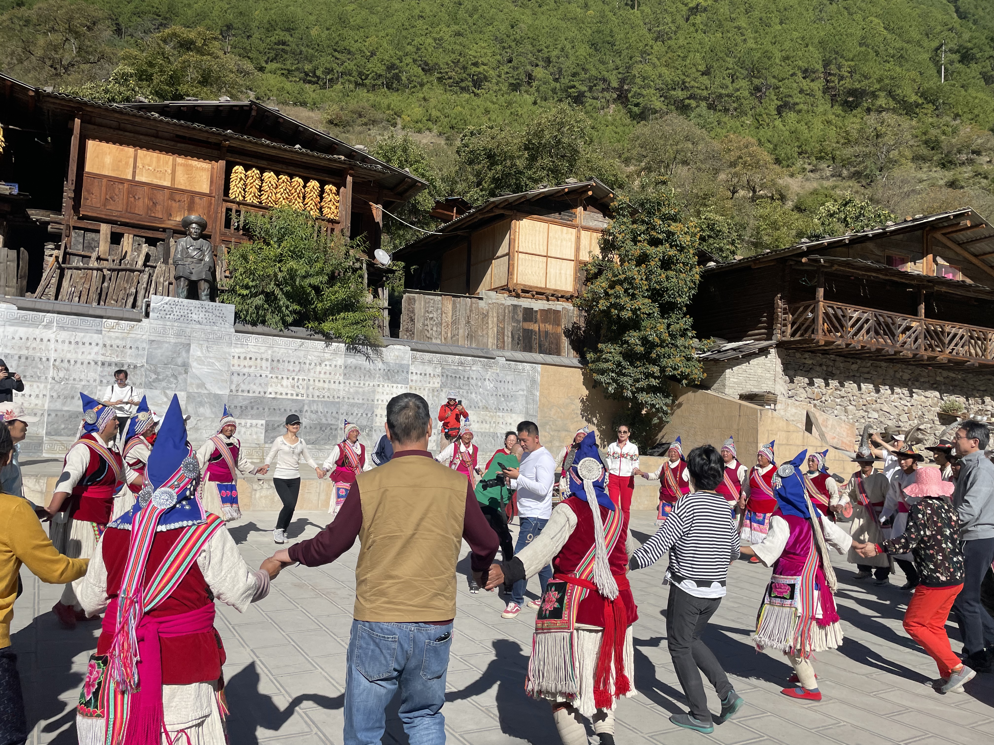 (三)打好文化“产业牌”,助推群众增收。随着乡村振兴战略的实施,第二支部紧紧依托同乐村现有文化资源和自然资源,主动承担谋划产业发展、促进群众增收责任。一是全面推进文化产业发展。支部牵头,党员参与组织成立同乐村阿尺木刮歌舞表演队伍,在开展传统文化传承的同时,为外来游客提供傈僳族传统阿尺木刮歌舞表演,吸收表演队成员40人,带动户均增收0.2万元。党支部还带头成立同乐村文化产业发展专业合作社,积极开展傈僳族传统手工制品和工艺品销售,销售额年均累计达2万元。二是整合优势资源发展农业产业。2022年初,第二支部把长期无人管理且产量有减无增的20亩水蜜桃林和香梨林地进行承包和示范经营,积极组织党员开展修枝、压条、疏果,把原本群众不看好、产量低的果林管理起来,至年底累计创收已达1万余元,在发展壮大小组集体经济的同时也为依靠现有果林优势发展经济提供了有力参考。