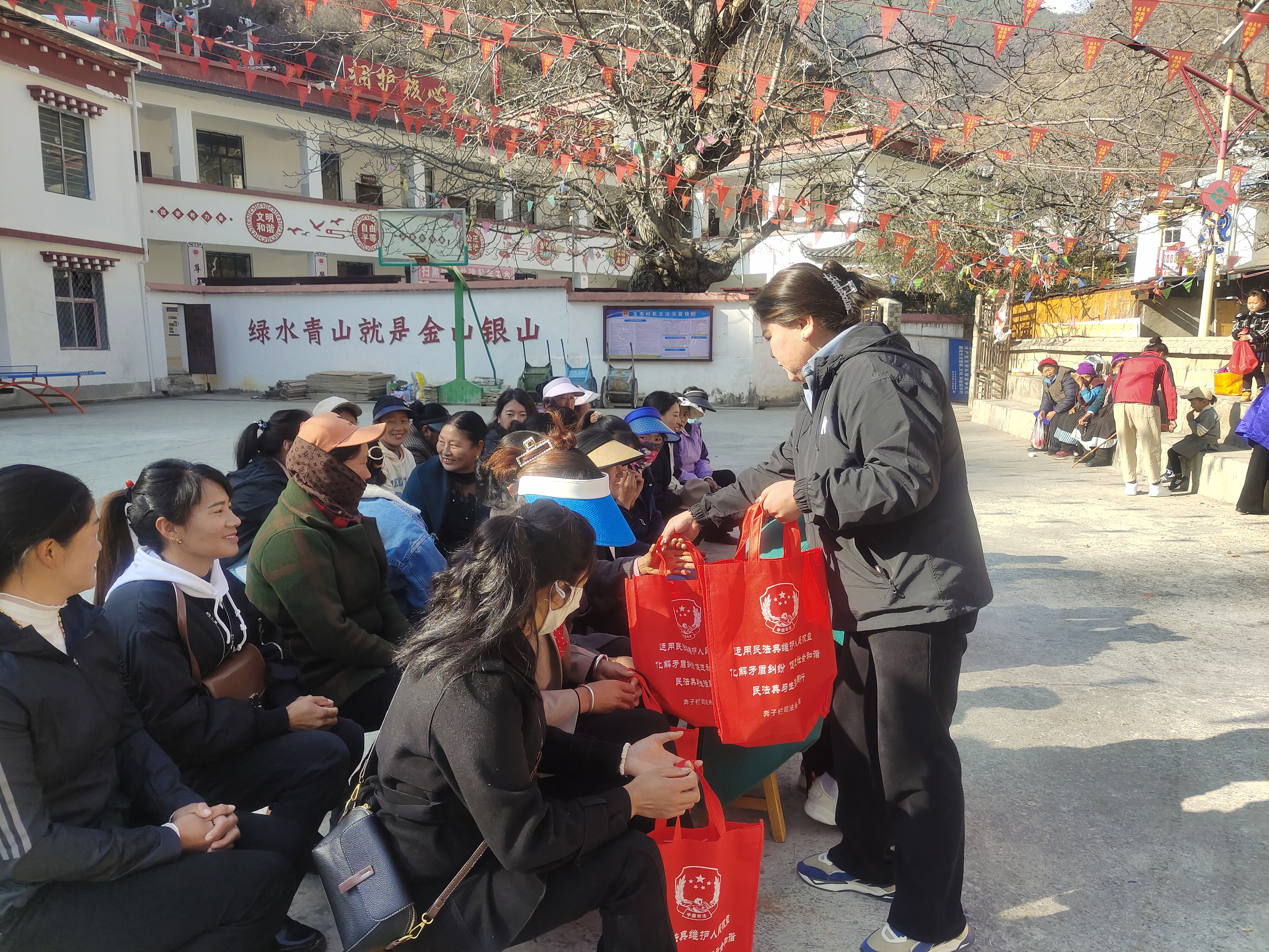 3月8日,奔子栏司法所到奔子栏镇玉杰村开展“普法强基 送法进村”宣传活动,工作人员结合工作中真实的案例,围绕《刑法》、民法典、《中华人民共和国妇女权益保障法》《中华人民共和国反家庭暴力法》和打击养老诈骗、防范电信网络诈骗等与群众生活息息相关的法律法规进行宣传。并在现场对群众提出的法律问题进行答疑解惑,引导群众尊法、学法、守法、用法,树立运用法律武器维护自身合法权益的意识。