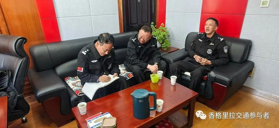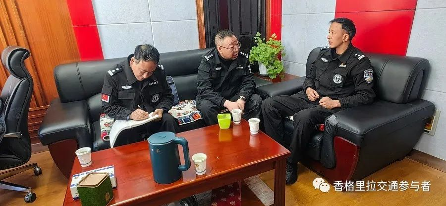为进一步强化冬季道路交通安全管理工作,确保冬季各项道路交通安全管控举措得到有力推进落实。12月12日,德钦县公安局政委汪中生、副局长江楚到德钦县公安局交警大队检查指导近期重点工作。交警大队教导员和照春就“冬季行动”、农村地区突出交通违法行为集中整治百日行动等近期重点工作开展情况向汪中生政委、江楚副局长作了详细汇报。