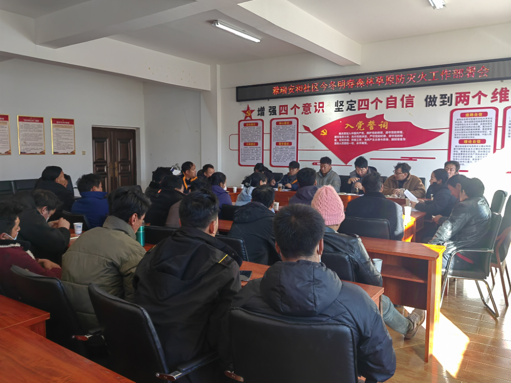 近期由于气候干燥,存在火灾隐患,雅瑞安和社区于12月20日特召开了今冬明春森林草原防灭火工作部署会,以进一步做好冬季火灾防控工作。此次会议由雅瑞安和社区“两委”、就业服务站、驻村工作队员召集社区“一肩挑”和新时代乡村振兴综合治理员共计36名共同参与,同时,强调要求参会人员在各自小组微信群进行宣传会议要点,并在召开各小组支部会议时现场传达会议内容。