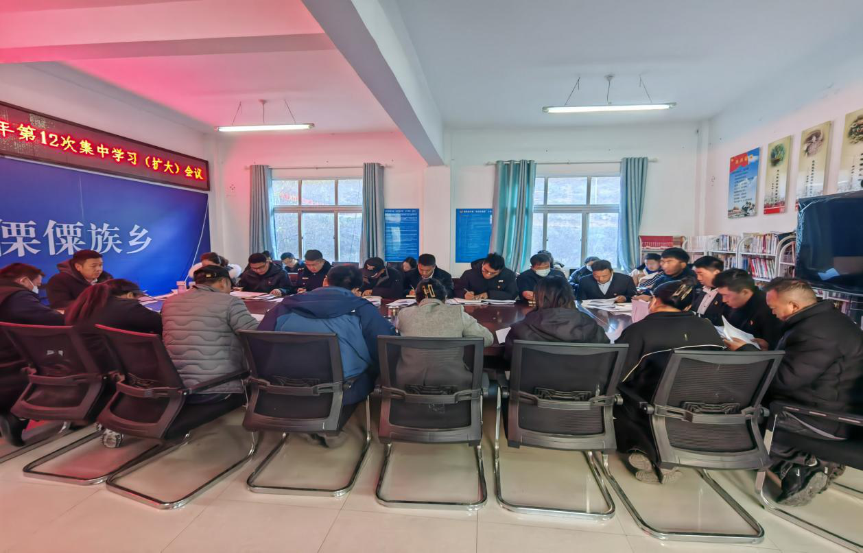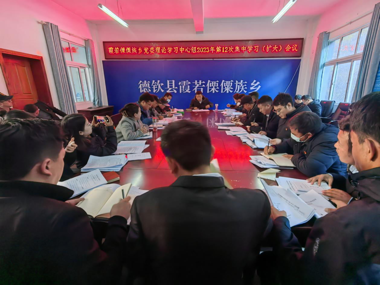 12月27日,霞若傈僳族乡开展党委理论学习中心组2023年第12次集中学习活动,乡党委书记主持会议并讲话,乡党委、政府班子成员参加会议,各村(社区)党总支书记、各中心(站所)负责人列席会议。
