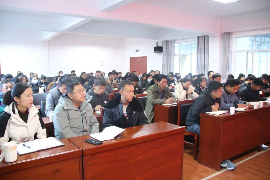 为认真总结2023年所取得的工作成绩,精心谋划2024年目标任务,营造真抓实干、再接再厉的浓厚氛围,激发全体干部的积极性和创造性,推动全镇经济社会又好又快发展。2024年1月3日,叶枝镇召开2023年度年终总结暨先进表彰大会。全镇干部职工、各村“两委”成员、驻村工作队、县驻镇各单位负责人参加了此次会议,会议由镇人民政府镇长和英主持。