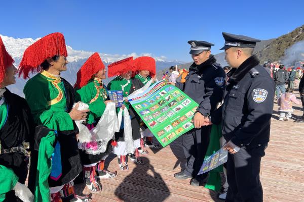 为切实做好食品药品环境安全宣传工作,严防“环食药”领域安全时间发生,切实提高辖区群众安全意识和法治思维,2024年大年初三,森警大队值班民辅警以县文化和旅游局主办的“迎新春民族民间歌舞展演”活动为契机,深入飞来寺景区开展森林防火、野生动植物保护、食品药品等法律法规宣传,不断提高人民群众对“环食药”领域知识的了解,增强人民群众的环保意识和食品药品安全意识,鼓励广大群众积极揭发涉及“环食药”领域违法犯罪线索,警民携手,筑牢“环食药”防护墙,织密“环食药”管控网,拧紧“环食药”安全阀,共同打造良好“环食药”社会环境。