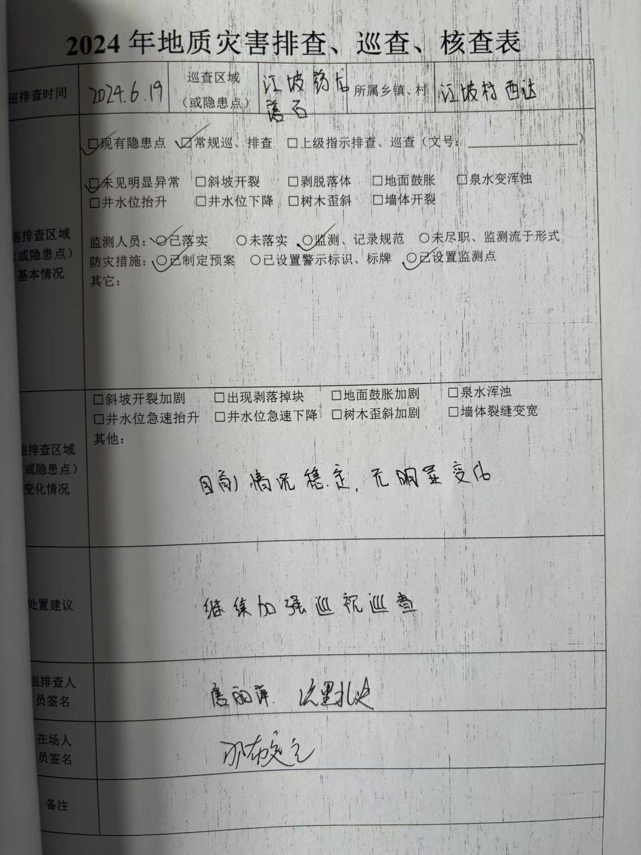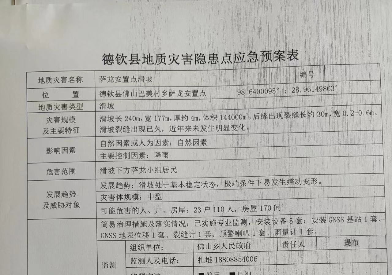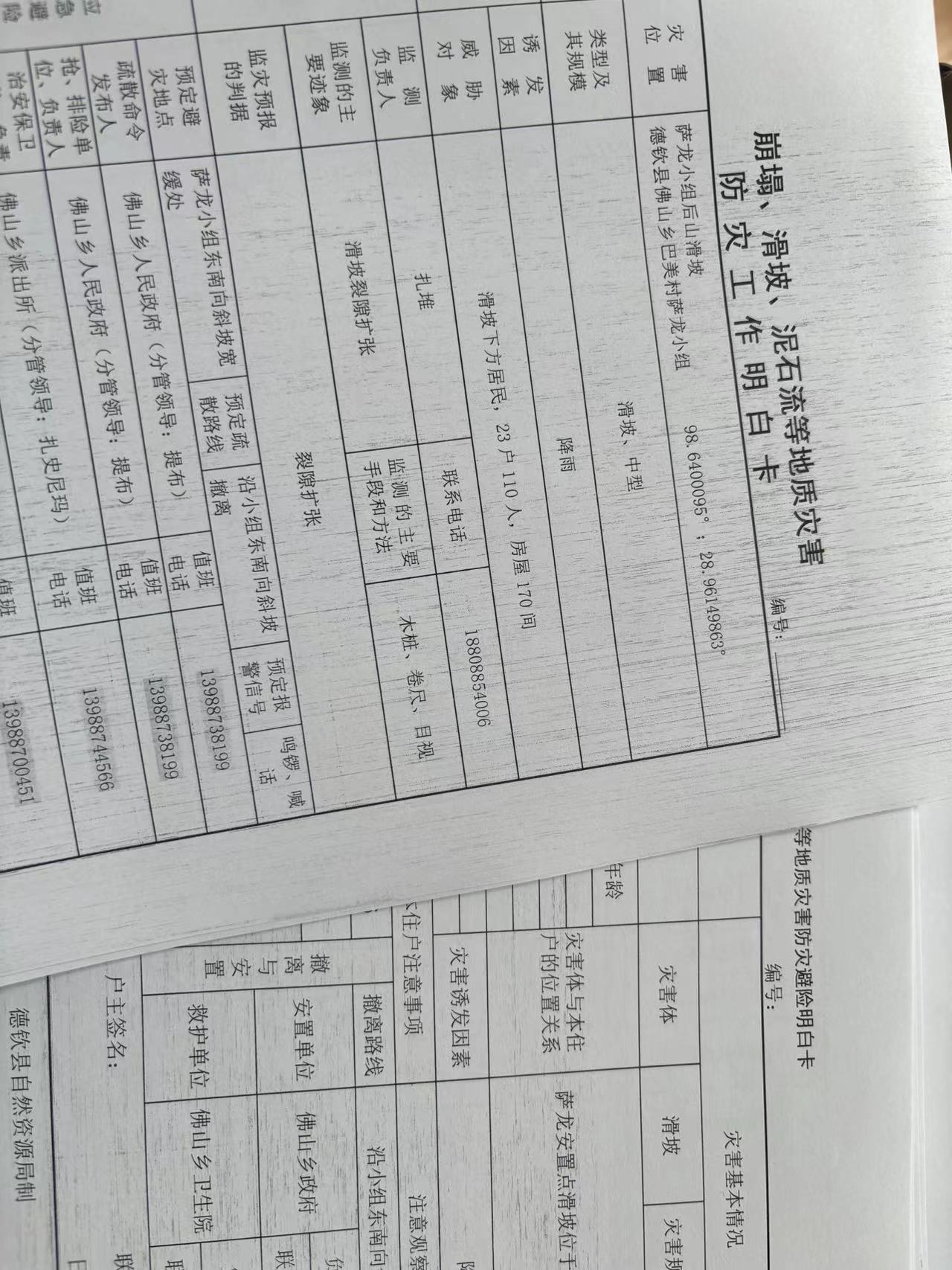 5.发放萨龙滑坡隐患点“两卡一表”