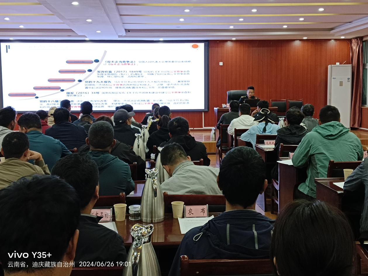 为深入贯彻党的二十大精神,立足新发展阶段,完整、准确、全面贯彻新发展理念,主动服务和融入新发展格局,推动高质量发展,着力构建覆盖事前事中事后全环节公平竞争政策实施机制,着力破除妨碍全国统一市场和公平竞争的体制机制障碍,着力强化公平竞争政策基础地位、促进形成公平竞争的市场环境,2024年6月26日,德钦县公平竞争委员会办公室主任、县市监局副局长以专题讲座的形式给德钦县委党校中青年干部培训班全体学员授课。