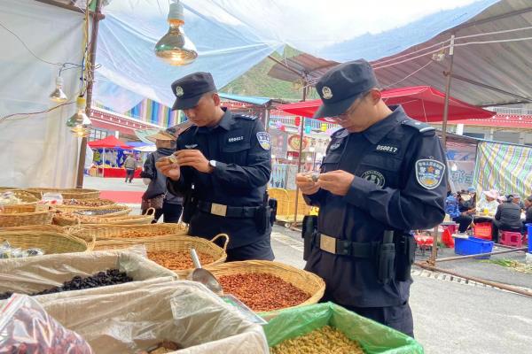 为切实广大人民群众饮食安全维护市场秩序。2024年7月4日,德钦县公安局环食药侦大队在德钦县民族团结文化中心广场展销会现场开展对展销会食品、药品安全检查活动。