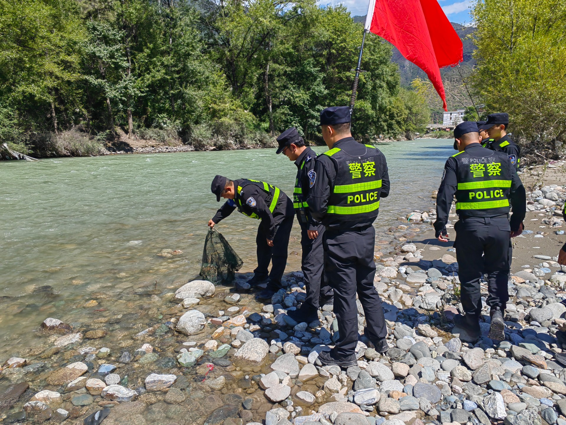 为认真贯彻落实习近平总书记关于长江“十年禁渔”的系列重要指示批示精神,按照党中央和国务院、公安部决策部署,进一步深化推进公安机关“长江禁渔”行动,以更高的政治站位,扛起保护和改善生态环境的时代重任,按照省委、省政府“保护优先”原则,推行“河湖警长制”及《德钦县公安机关全面落实“河湖警长制”工作实施办法》,结合《德钦县公安机关“昆仑2024”专项行动实施方案》,森警大队五中队联合拖顶派出所加大对我辖区珠巴洛河、金沙江水域的执法保护,深入辖区村社开展长江禁渔宣传活动,建立举报有奖制度,鼓励群众举报线索,紧盯重要时段、重点场所、重点区域、重点行为,依法严厉打击非法捕捞、运输、收购、贩卖、加工全链条犯罪及以食用为目的非法渔获物的行为,重点打击电、毒、炸、网和捕猎珍贵、濒危水生野生动物的犯罪行为。