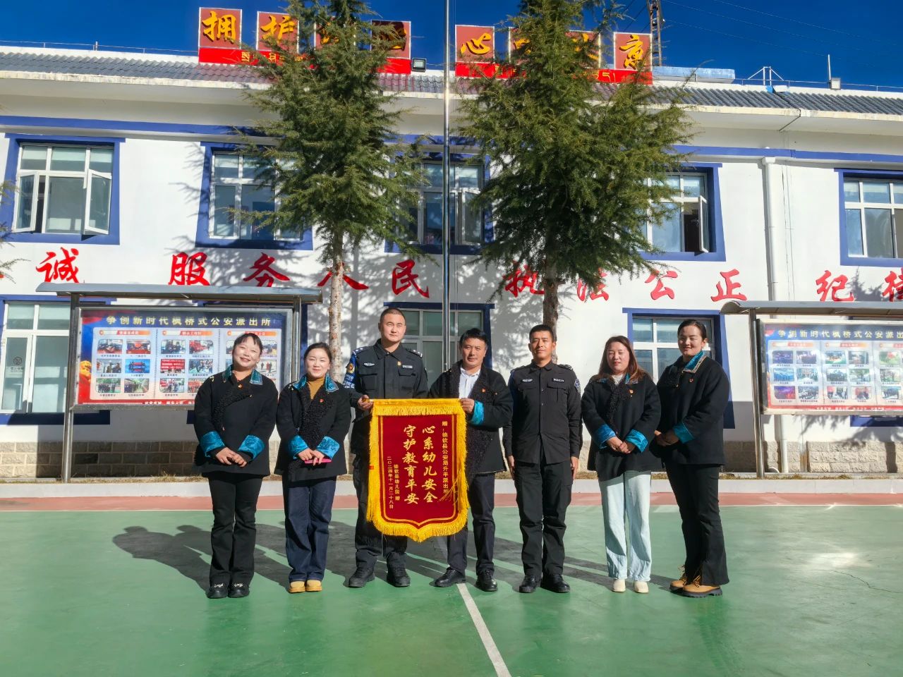 近期,德钦中学和幼儿园分别将两面印有“警校共建鱼水情,亲师爱生暖人心”和“心系幼儿安全,守护教育平安”的锦旗送到了升平派出所,这承载着学校与师生对派出所长期守护校园安全工作的诚挚谢意与高度肯定。