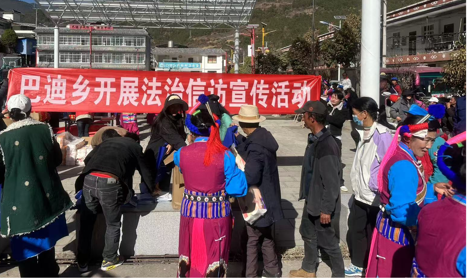 为加深广大群众对《信访工作条例》的认识和了解,切实增强群众依法有序信访、合理维护权益的意识,维护良好的信访秩序,推进信访工作规范化、法治化,巴迪乡平安法制办联合乡司法所,以12月24日“文化年货送温暖活动”暨文化惠民演出为契机,在巴迪乡民族文化广场组织开展信访法治化宣传活动。