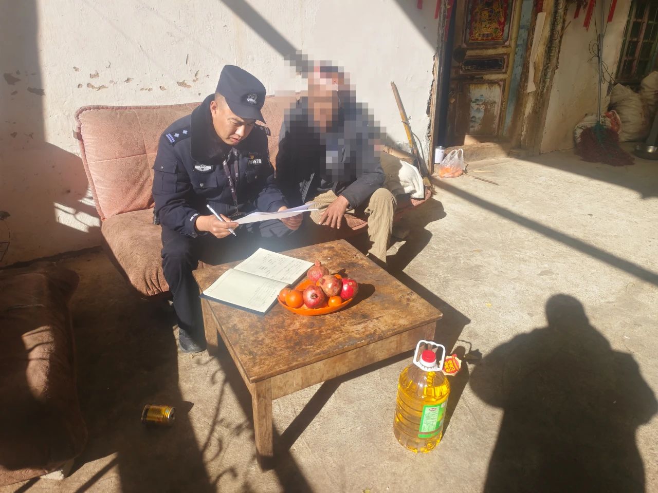 岁末年初,在元旦节即将来临之际,德钦县公安局佛山派出所党支部组织党员民警开展“我为群众办实事”活动,走访了辖区五个村委会,看望慰问了困难家庭及特殊群体家庭,给群众送上了一份冬日的温暖。