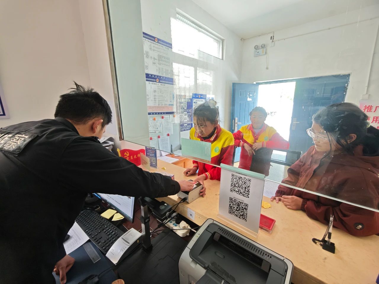 因学生上课时间不便前来办理身份证,为深入践行“我为群众办实事”实践活动,解决学生群体实际需求。近日,德钦县公安局奔子栏派出所户籍室通过“下班不断档、午休不打烊”的办证方式,为德钦县第二小学学生办理身份证,开通“绿色通道”。