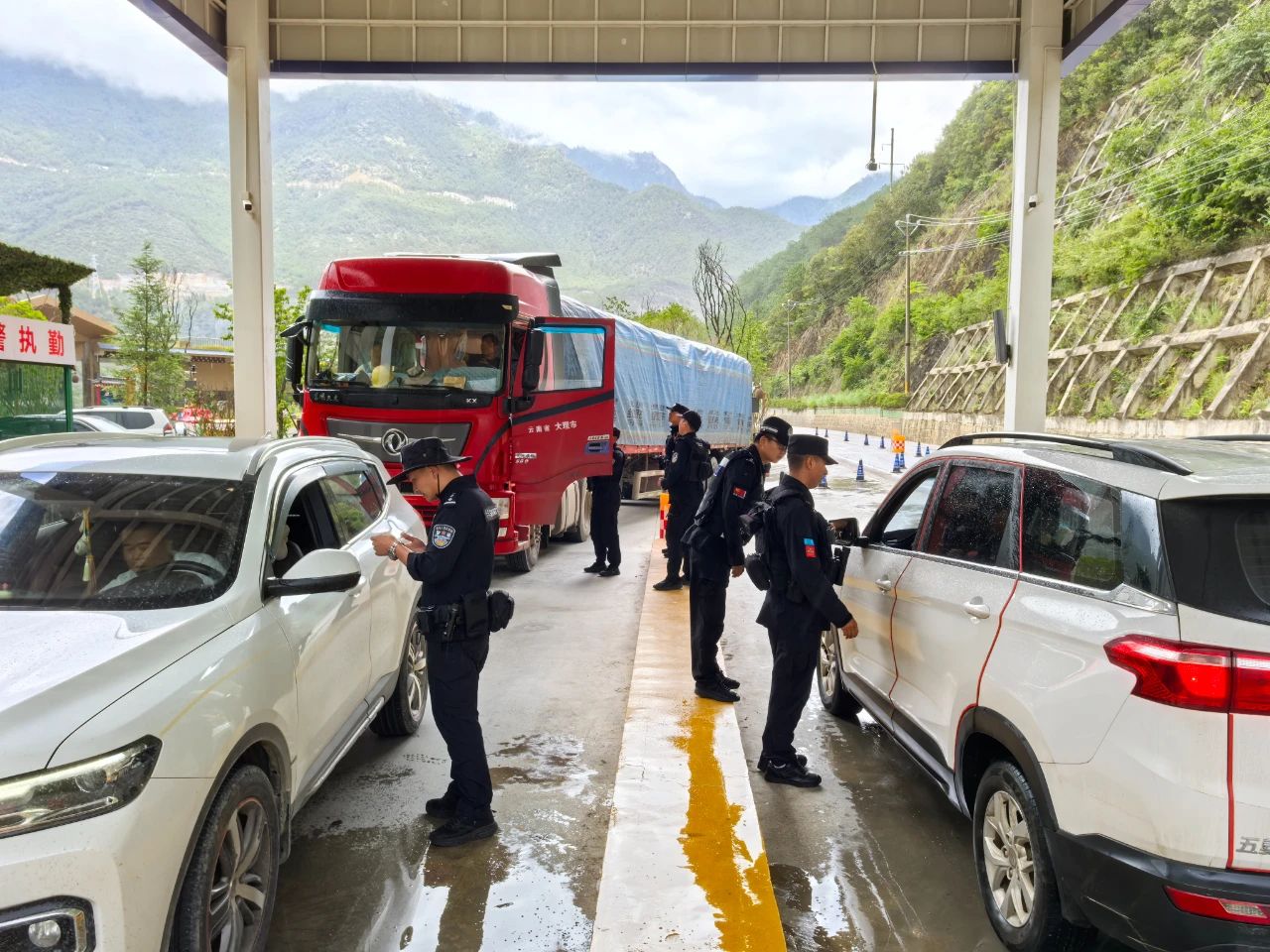 下午,全体参训人员到塔城镇其宗检查站,将上午所学技能投入实战查缉任务检验。期间,各派出所按照“统一指挥、分工协作”的原则,紧密围绕查缉勤务流程,重点强化车辆查控、人员核查、物品安检等环节的规范操作,同步开展信息共享、联动处置等协同训练。全体民警始终保持严谨细致的工作作风,严格遵循执法规范,从车辆引导、证件查验到人员盘查、重点物品筛查,每个环节均做到“有章可循、有规可依”,既检验了前期训练成果,又通过实战场景进一步磨合了多所联动机制,切实将“练为战”理念贯穿于整个拉练过程。