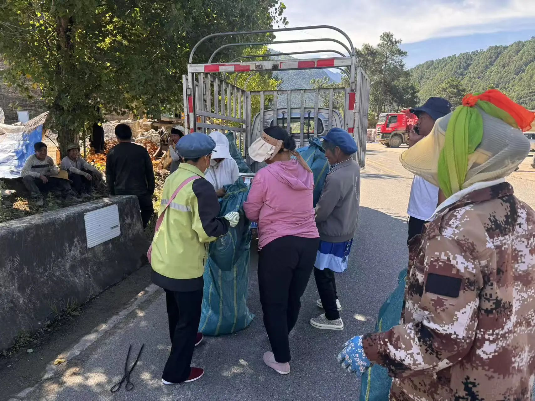 党建引领聚合力,分工协作抓落实。为确保清理行动扎实见效,村党总支充分发挥党建引领作用提前制定详细方案,动员多方力量组建清洁队伍。活动采用“分组包片、责任到人”模式,第一组由党员干部牵头,联合保洁员负责梓里上组到拉八科组路段,重点清理沿线白色垃圾及散落杂物;第二组由生态护林员组成,负责梓里村委会到咱你砖厂路段,集中整治路面及两侧环境卫生。活动中,各组对主干道沿线塑料袋、碎纸屑、烟头等进行“地毯式”清扫,同时针对如占用道路遮阳棚,路边堆放的垃圾和纸板等历史遗留问题,通过耐心向农户讲解环境卫生重要性,争取农户理解与配合,彻底清理占道杂物,打通“清爽通道”。