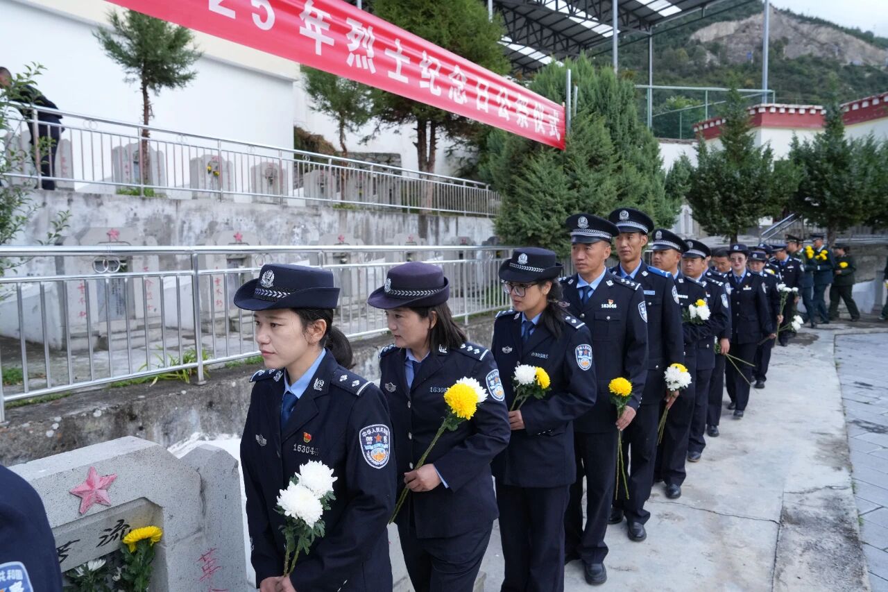 9月30日上午在第12个国家烈士纪念日到来之际德钦县公安局组织民辅警代表参加烈士纪念日活动缅怀英烈传承红色基因汲取奋进力量
