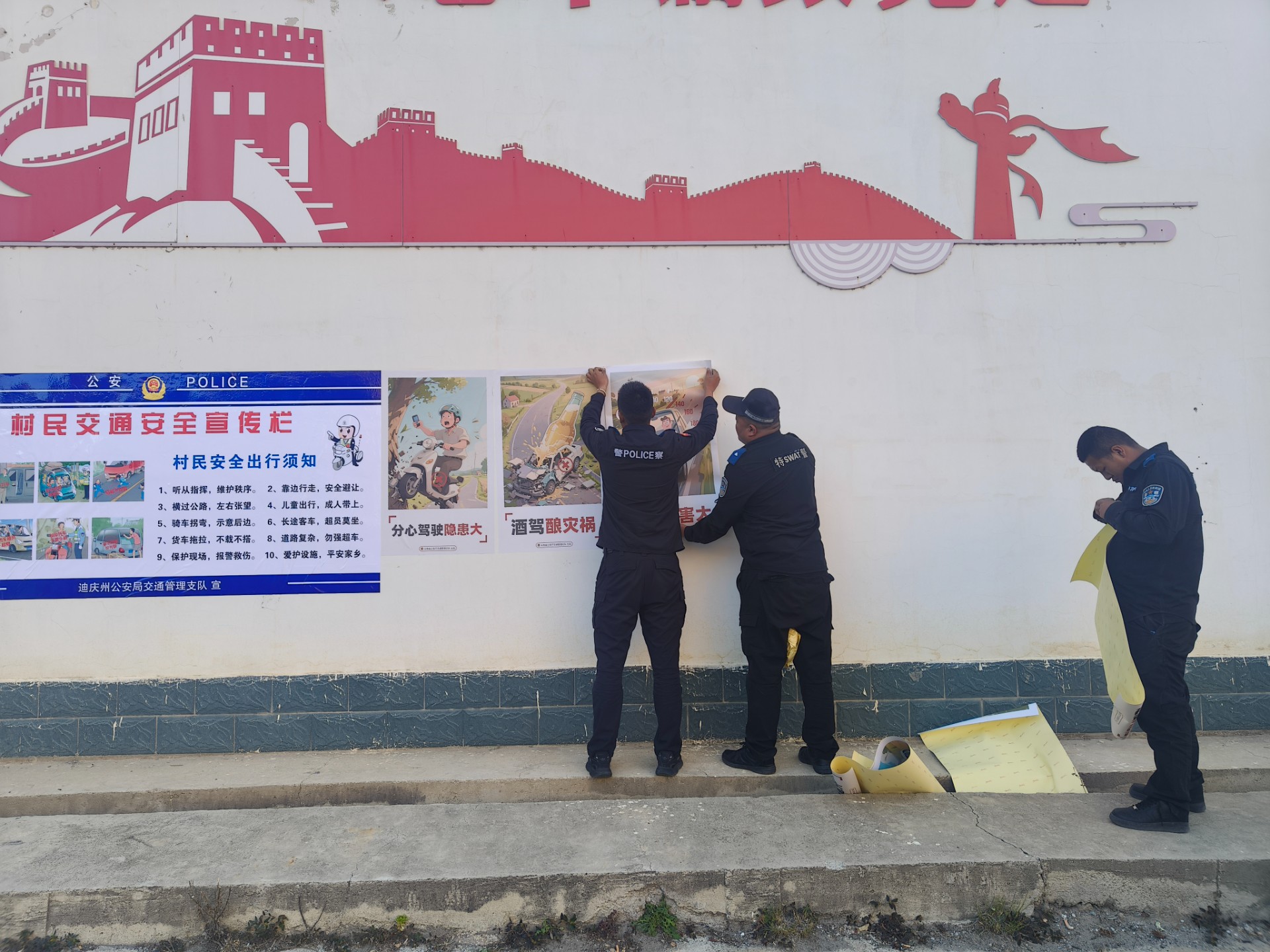 为切实扭转农村地区道路交通安全薄弱局面,扎实推进道路交通安全百日攻坚行动,德钦县公安局交管大队、各乡镇派出所聚焦宣传教育源头治理,以行政村墙体标语、农村学校宣传栏建设更新为重要抓手,创新宣传形式、延伸覆盖范围,全力提升农村群众及学生的交通安全意识与自我防护能力,为农村地区营造安全有序畅通的道路交通环境。