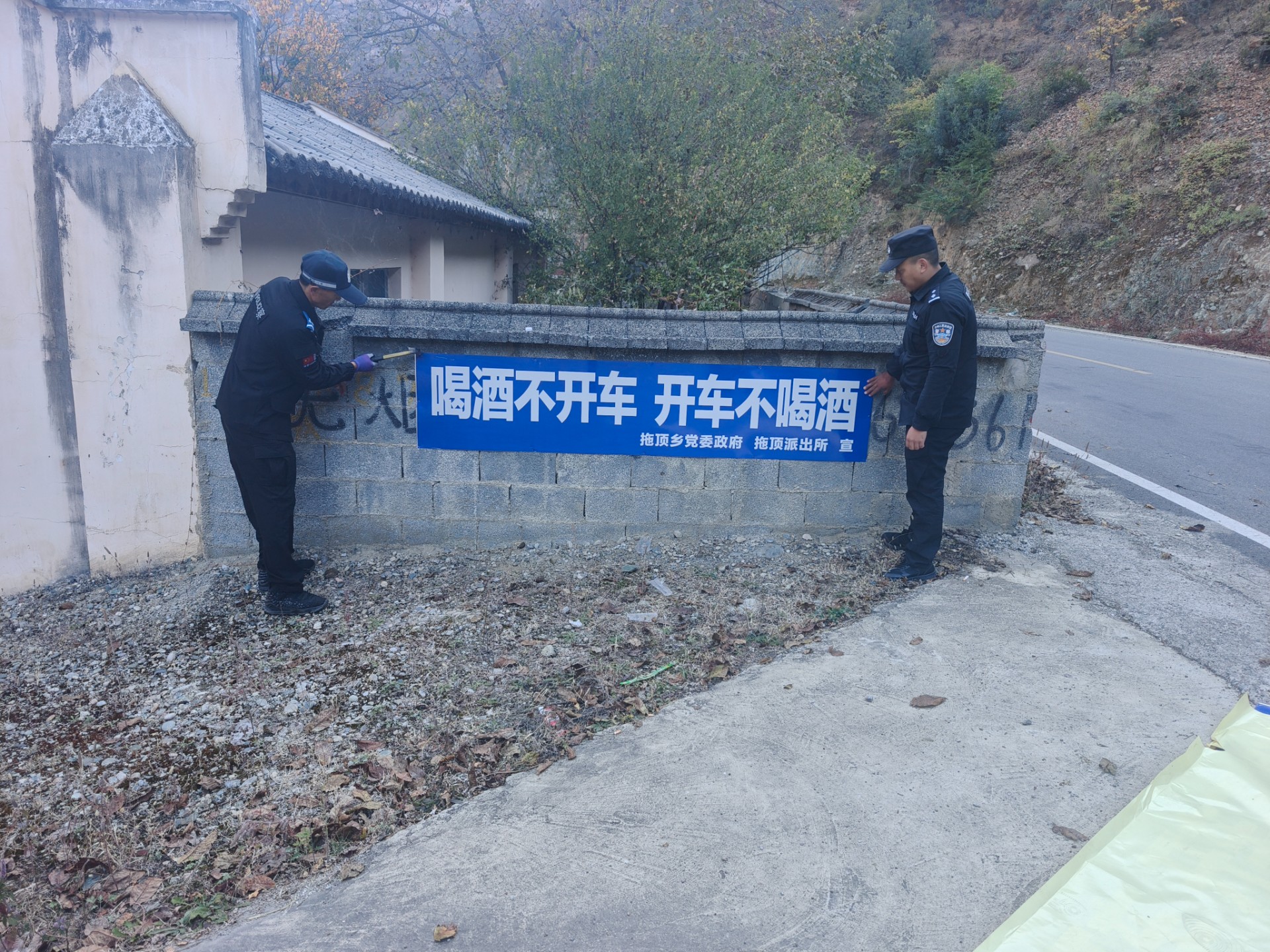 墙体标语亮乡村,安全理念入脑入心。各乡镇派出所以“接地气、易理解、广传播”为原则,推进行政村交通安全宣传墙体标语建设。聚焦农用车违法载人、面包车超员超速、酒驾醉驾、驾乘摩托车不戴安全头盔、不按规定系安全带等农村高频交通违法行为,精心筛选“十次事故九次快,超速超载是祸害。”“珍爱生命守护幸福,酒驾醉驾损害巨大。”“头盔保护的是生命,安全带系着的是平安。”等通俗标语,采用醒目色彩和规范字体,在村委会周边、村口要道、文化广场等人员集中区域墙体进行喷涂。