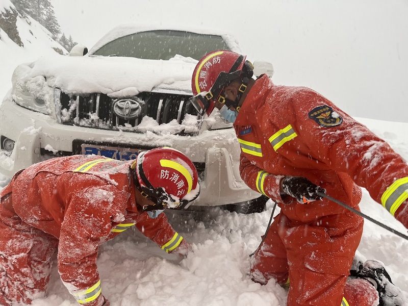 2022年1月13日16时51分,德钦县消防救援大队接到报警称:德钦县白马雪山214国道岔往羊拉方向800米处,有1车6人被困于公路积雪路段。德钦大队迅速出动1车6人前往处置。