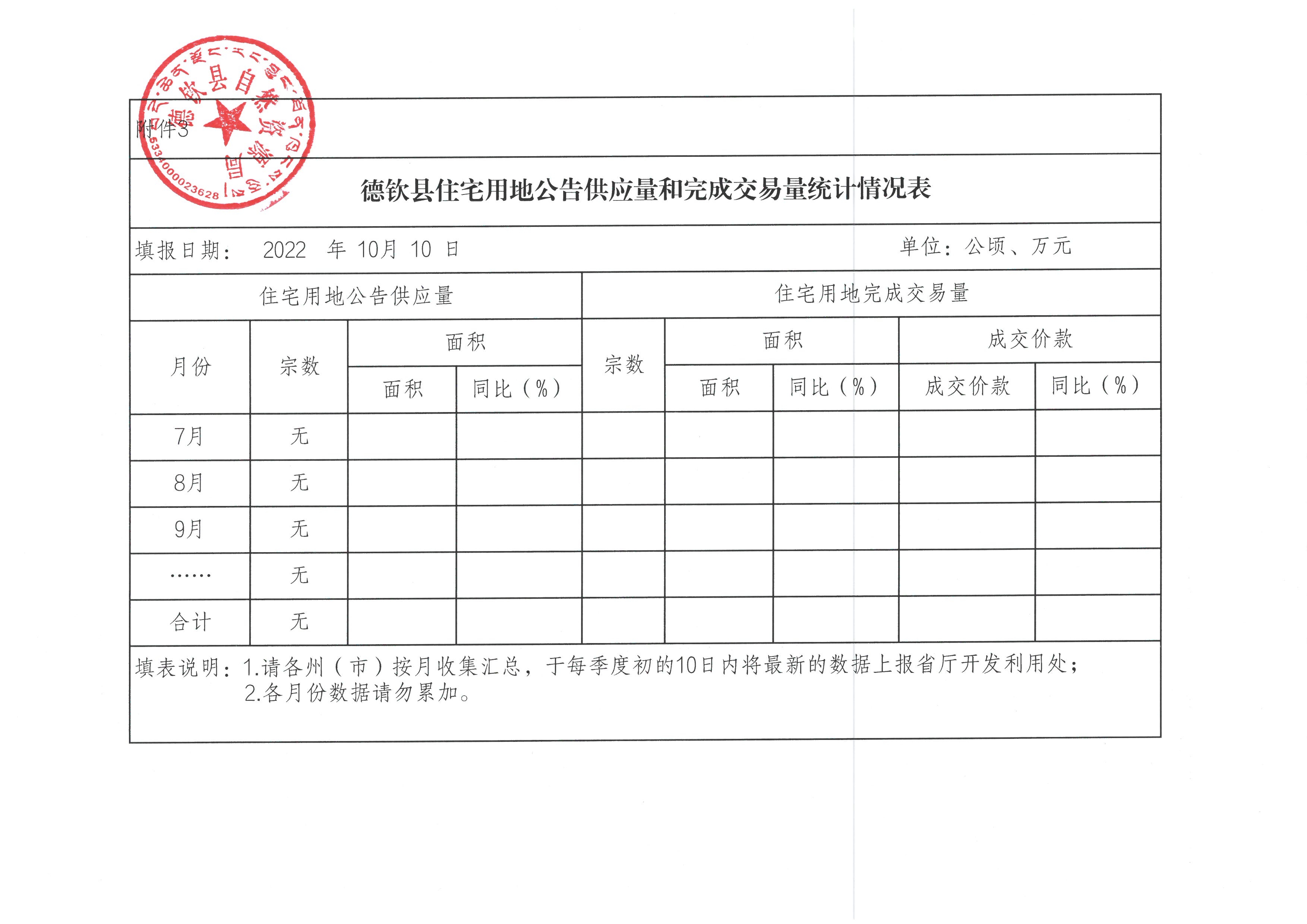 2022年德钦县第三季度存量住宅用地信息公开