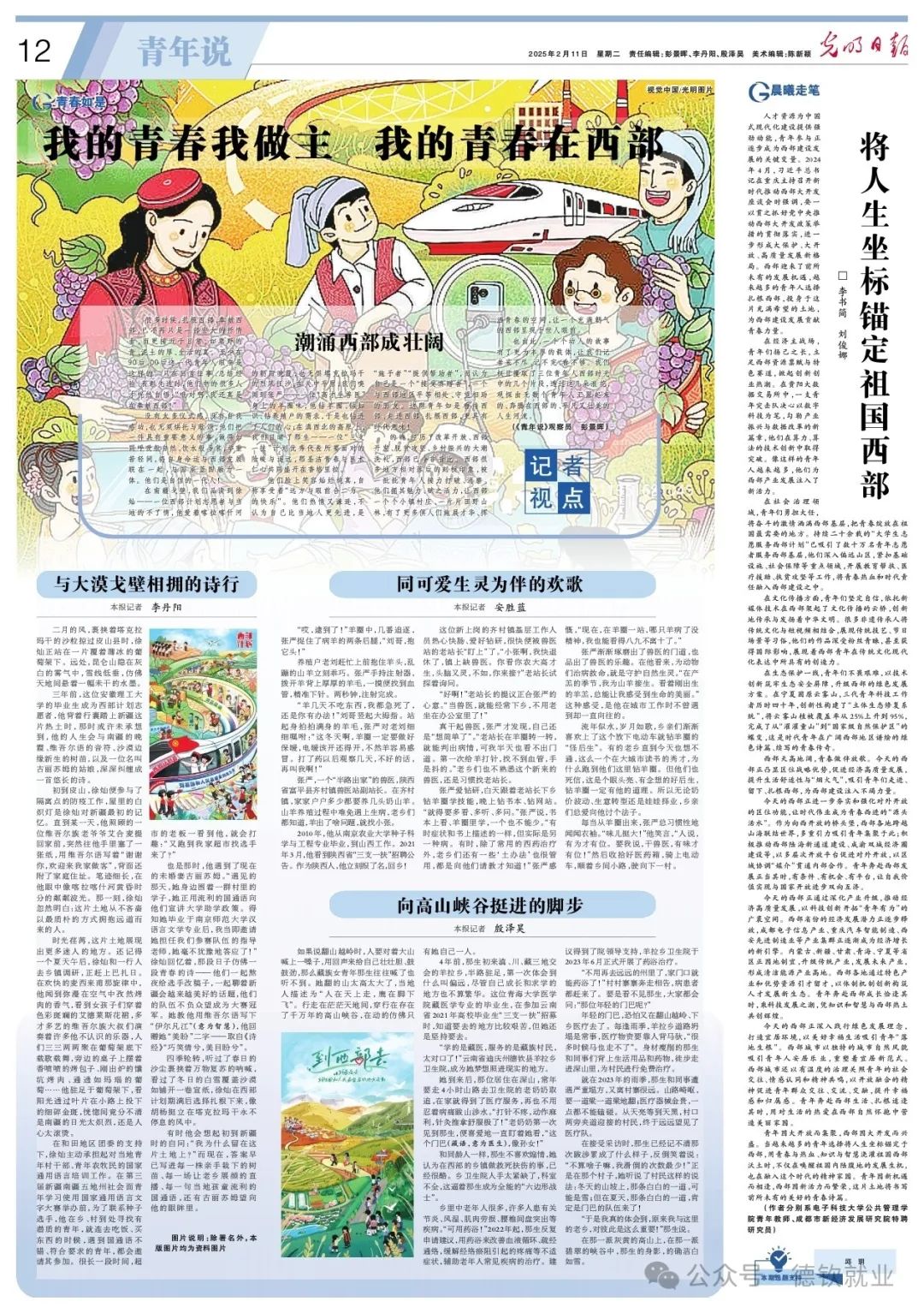 很多时候,扎根西部、奉献西部,已不再只是一部宏大的抒情曲,而更接近于日常,如草野的青、泥土的厚、生活的真。至少在90后、00后这一代青年人眼中是这样的。只在回首往事、总结经验、表彰先进时,他们中的很多人才恍然自悟:“哦对啊,我还真是在奉献西部!”