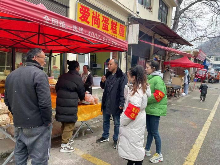 (图为在霞若集镇商铺检查环境卫生)