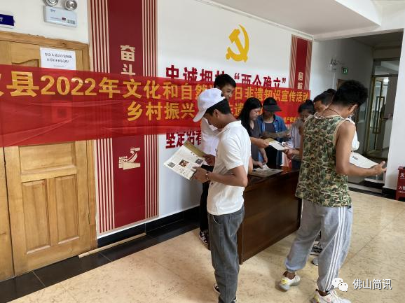2022年6月11日是我国第十七个“文化和自然遗产日”, 活动主题为“文物保护:时代共进、人民共享”。为迎接“文化和自然遗产日”的到来,进一步提高人民群众非物质文化遗产保护意识,切实承担起加强文物保护利用和文化遗产保护传承的历史使命,营造全民广泛参与非遗保护利用传承的良好氛围,6月9日下午,佛山乡集中开展“文化和自然遗产日”非遗宣传活动。