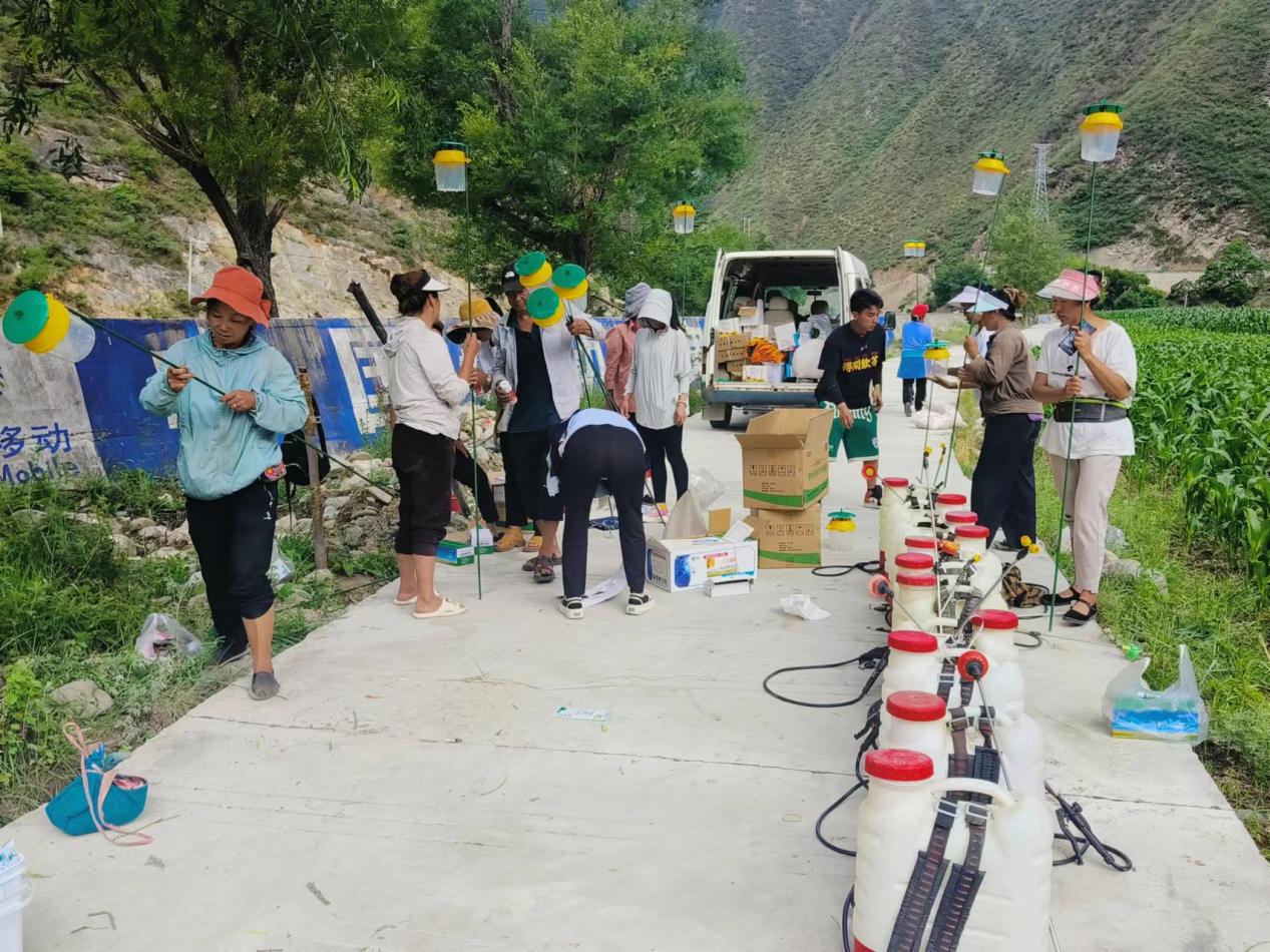 当前,正值田间管理关键时期,为有效保障粮食安全,全面推广应用农业增产增效技术。2023年6月26日至30日,德钦县农业农村局组织专业技术人员先后到霞若乡、拖顶乡部分村组开展农村实用技术培训,累计培训农民343人次。发放技术宣传册200余份、生物农药20件、叶面肥1800包、粘虫板10件、害虫诱捕器200套、防护服30套、张贴彩色技术挂图10份。同时,在玉米草地贪夜蛾危害重点阻截区域开展无人机飞防500余亩。