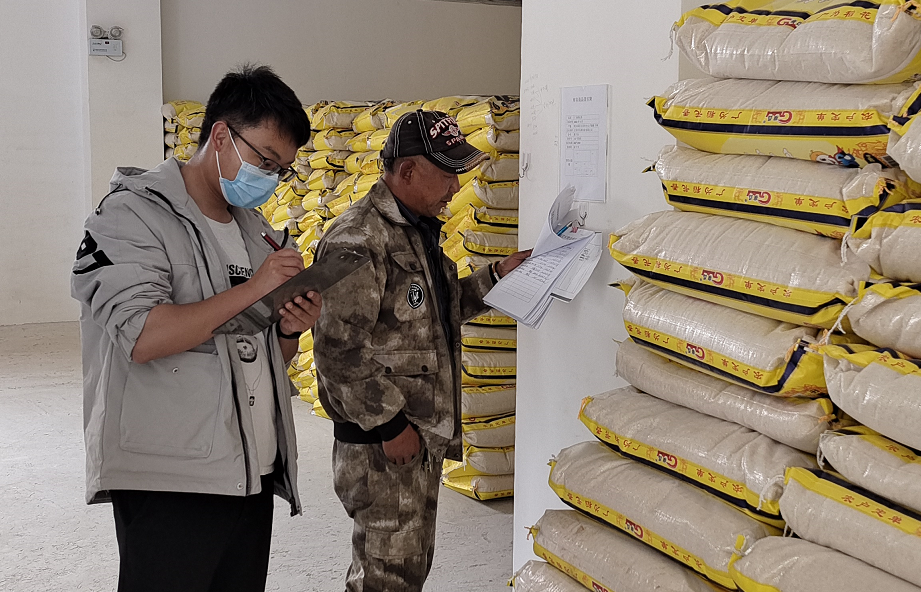 为进一步保障政府储备粮食品安全工作落地落实,2022年5月26日下午,我局执法人员格松吉村、吴万强赴德钦县粮油购销总公司开展储备粮粮食安全日常检查工作,充分深入各大粮食仓库,仔细查看储备粮储存条件,库房温度,粮食购进日期,保质期,储存量等内容。