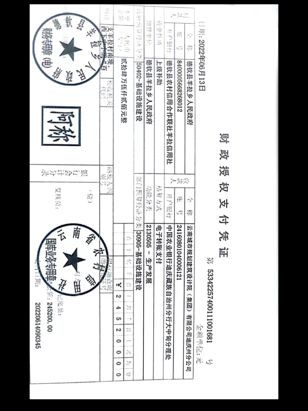 财政授权支付凭证 | 2022.6.13 | 2.696 |